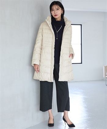 ボリューム感を調整し、エレガントに着こなせるダウンコートです。
