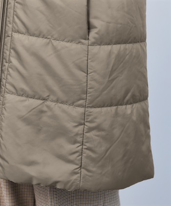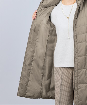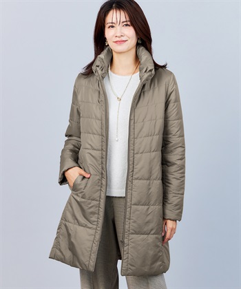 ・マフラーがなくても首元まで温かい、タックの入った立体感のあるスタンド衿がポイントです。