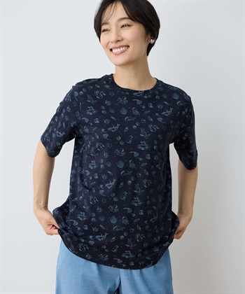ヒトデやカメなどの海モチーフをあしらった爽やかなTシャツです。