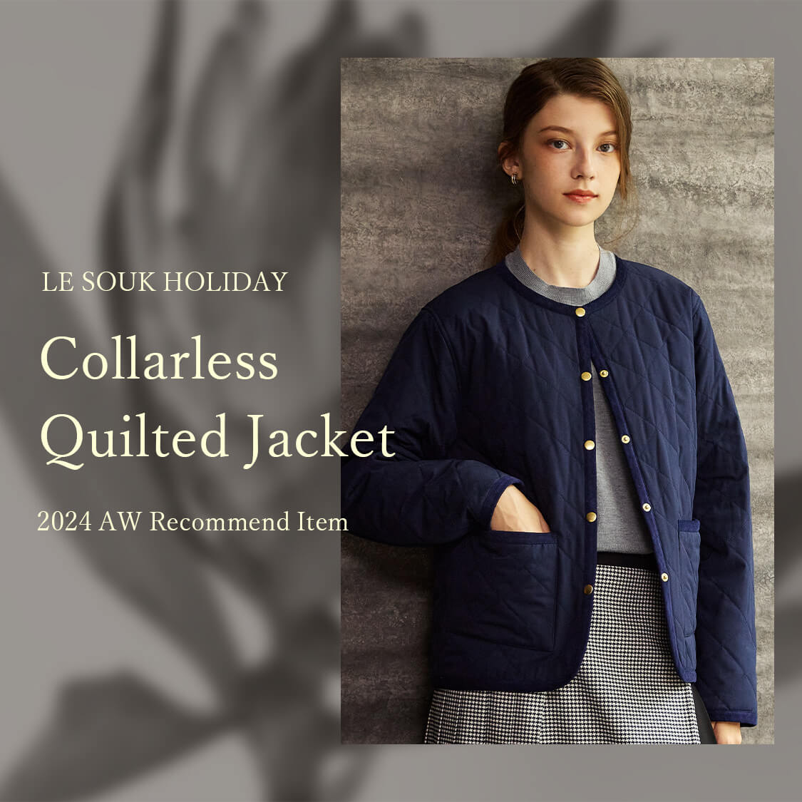 ウールアウターはまだ早い、ちょうどいい”ノーカラーキルトジャケット”