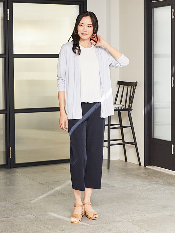 機能性素材から今期のトレンドデザインまで、様々なシーンで活躍するカーディガン特集。 機能性素材から今期のトレンドデザインまで、様々なシーンで活躍するカーディガン特集。 index item01. printedcardigan item02. milledcardigan item03. milledcardigan item04. bolerocardigan item05. meshcardigan item06. sheerblouson item01. printed cardigan リバティプリントカーディガン coordinate 淡いサックスブルーで心も明るくなるリバティプリントで切り替えたカーディガン。 cardigan ¥9,889 BUY tank top ¥2,189 BUY pants ¥6,589 BUY 前ボタンを留めてプルオーバー感覚でも着られます。 BUY NOW item02. milled cardigan フライスカーディガン coordinate UV対策できる着流しカーディガン、着ないときは小さく畳んでバッグに。 cardigan ¥6.589 BUY blouse ¥7,689 BUY pants ¥6,589 BUY bag ¥5,489 BUY UV対策、接触冷感機能付き。 BUY NOW item03. milled cardigan フライスカーディガン coordinate ブラウス&パンツのお仕事服にも相性抜群なロングカーディガン。 cardigan ¥6,589 BUY blouse ¥6,589 BUY pants ¥6,589 BUY オフィスでも着られるシンプルなデザインは冷房対策にぴったり。 BUY NOW item04. bolero cardigan ボレロカーディガン coordinate セットアップに羽織ったのはコンパクトなシルエットのカーディガン。 cardigan ¥6,589 BUY blouse ¥8,789 BUY skirt ¥10,989 BUY bag ¥7,689 BUY ホームクリーニング可能でお手入れも楽々。 BUY NOW item05. mesh cardigan メッシュカーディガン coordinate 今季トレンドのメッシュ編みカーディガン、Tシャツに羽織るだけで上品なカジュアルスタイルに。 cardigan ¥7,689 BUY T-shirt ¥4,389 BUY pants ¥6,589 BUY bag ¥6,589 BUY 透け感あるメッシュ編みが今年のトレンド。 BUY NOW item06. sheer blouson シアーブルゾン coordinate 涼しげなシアー素材のブルゾンをカーディガン感覚で羽織った夏らしいコーディネート。 cardigan ¥10,989 BUY pullover ¥6,589 BUY skirt ¥10,989 BUY ノーカラーデザインで首周りすっきり。 BUY NOW