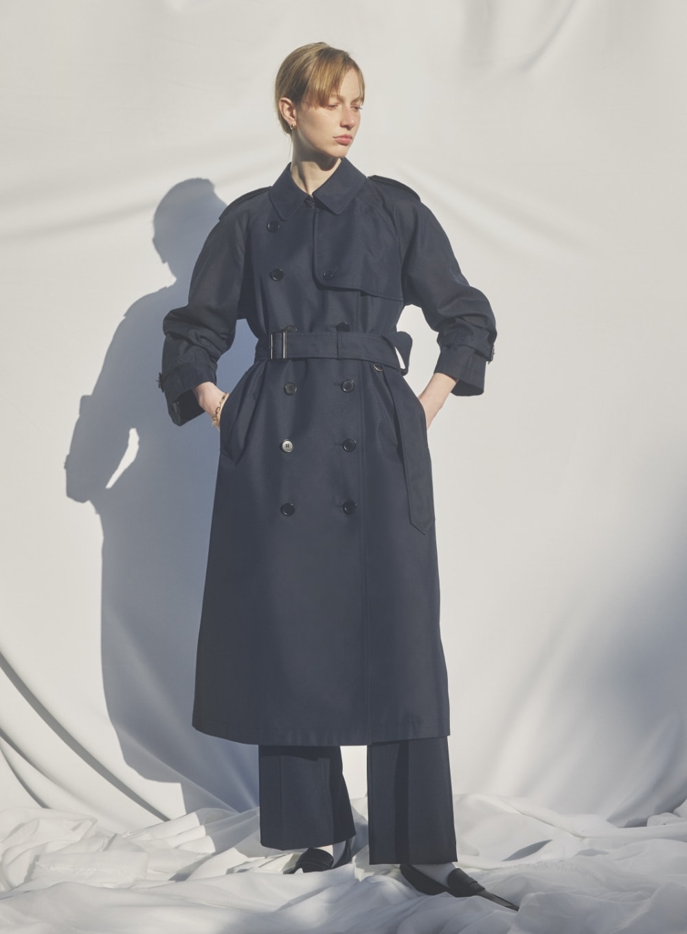 ブランドを代表する「名品」トレンチ。素材から妥協せずディテールにこだわり抜いた本格的な作りは着る人の佇まいを変えてくれる。長めの着丈でボトムスを選ばず合わせやすい。