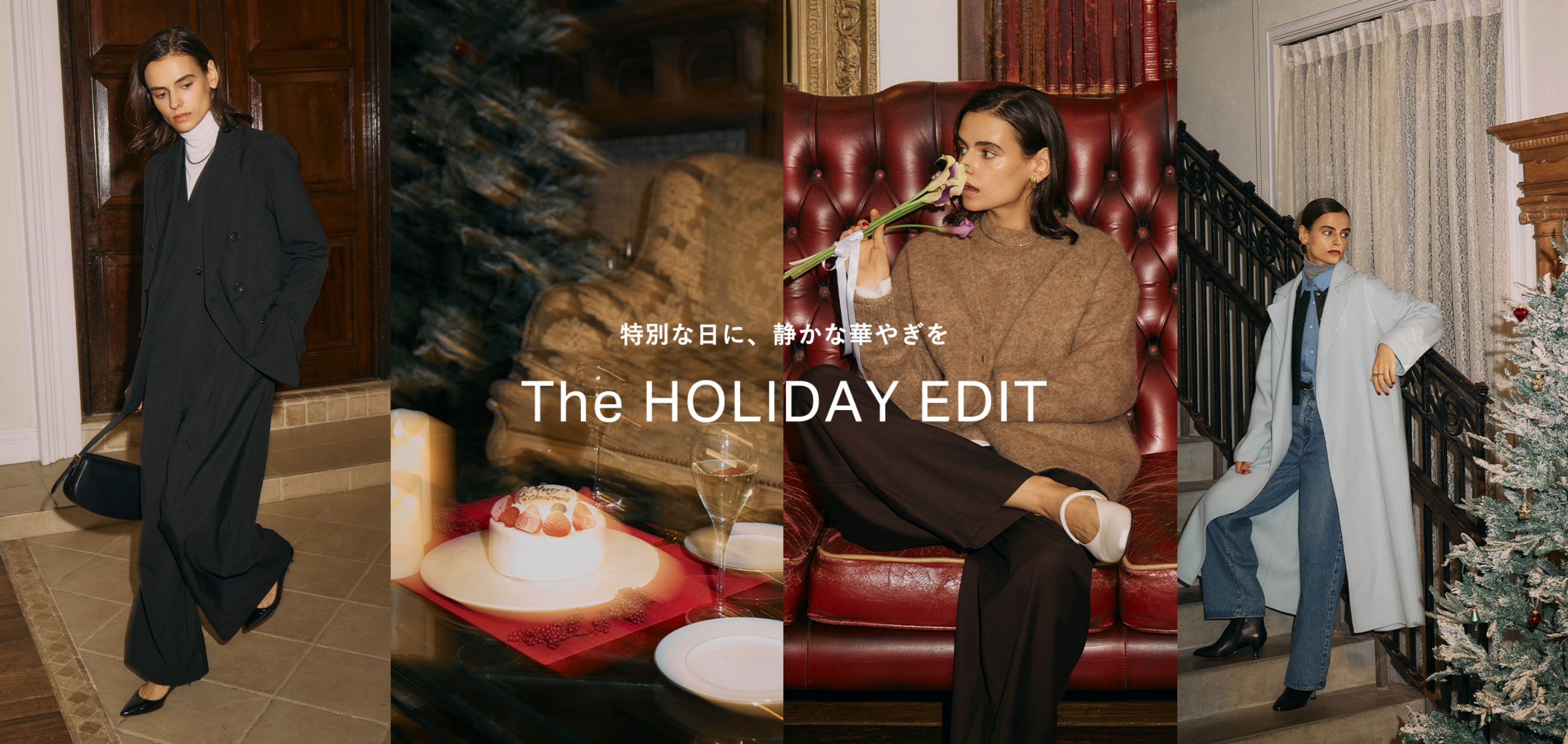 1年でいちばん心躍るホリデーシーズン。 クリスマスや忘年会など、特別なシーンに合わせて、 ファッションも思いきり楽しみたい——。 上品さのなかにほどよい遊び心を添えて。 街の灯りに映える、とっておきのコーディネートで特別なひとときを。