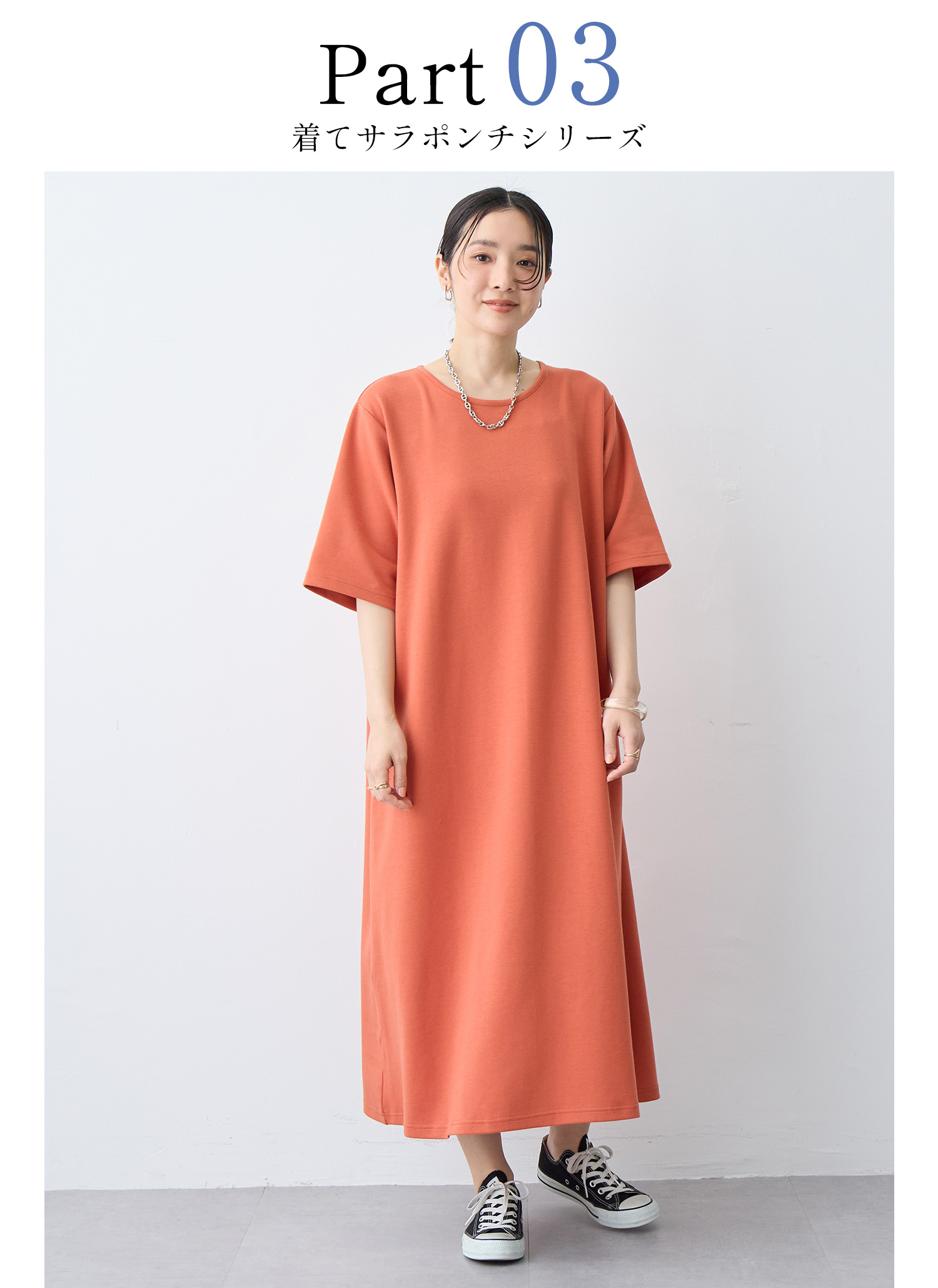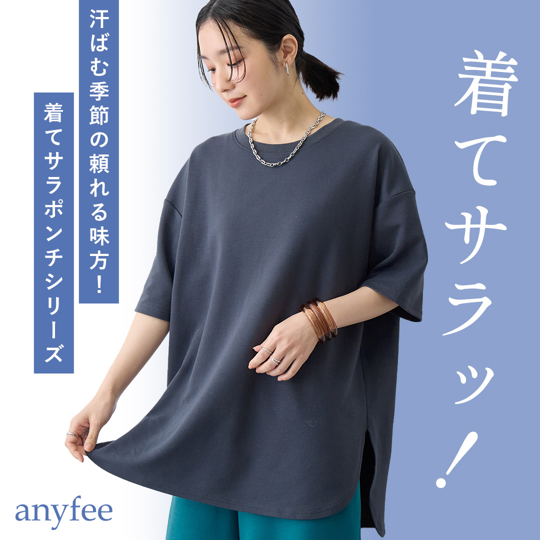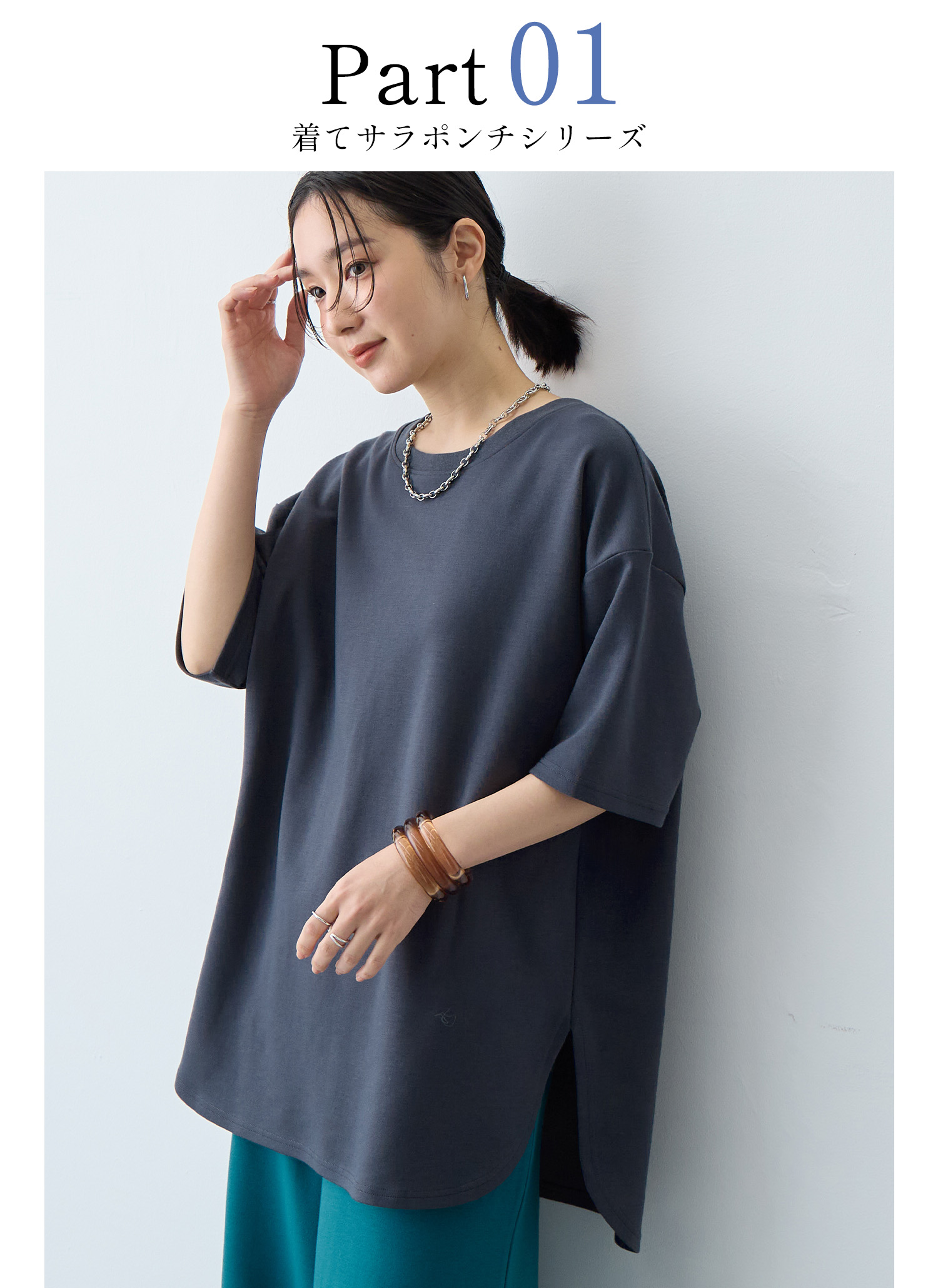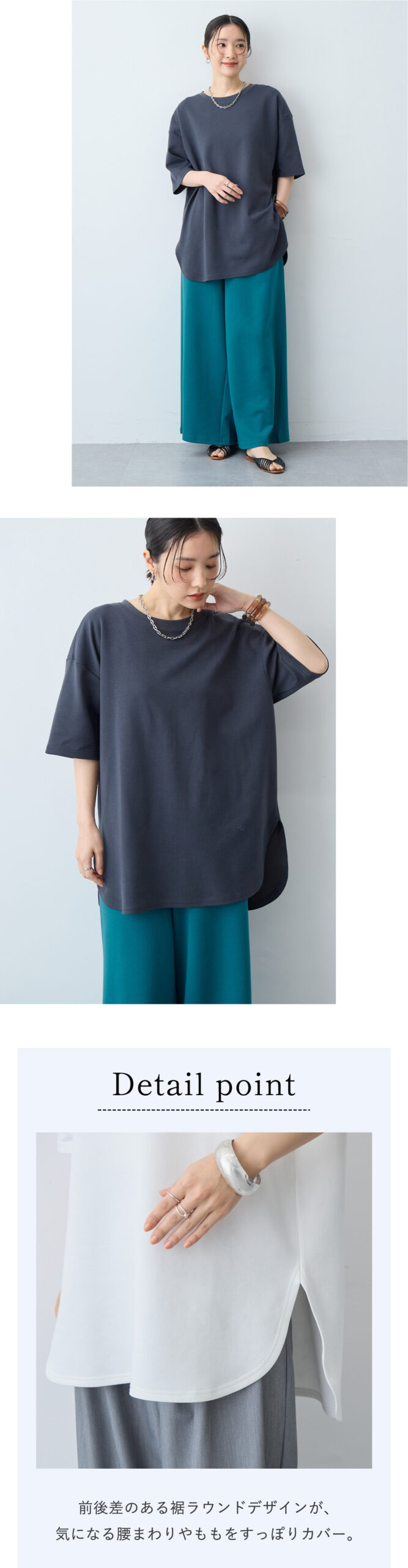着てサラなめらかポンチ素材裾ラウンドTシャツ