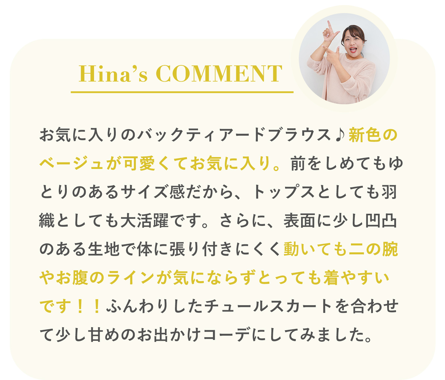 Hinaさんのリアルな着こなしとともに、春のおしゃれを楽しんで♪