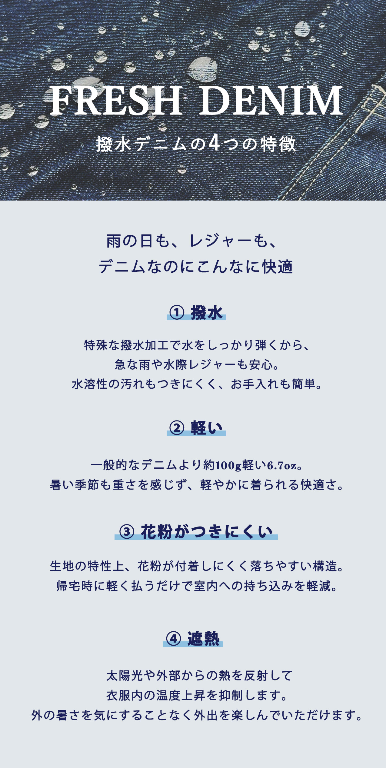 “撥水デニム”として注目の『Fresh Denim』シリーズから、