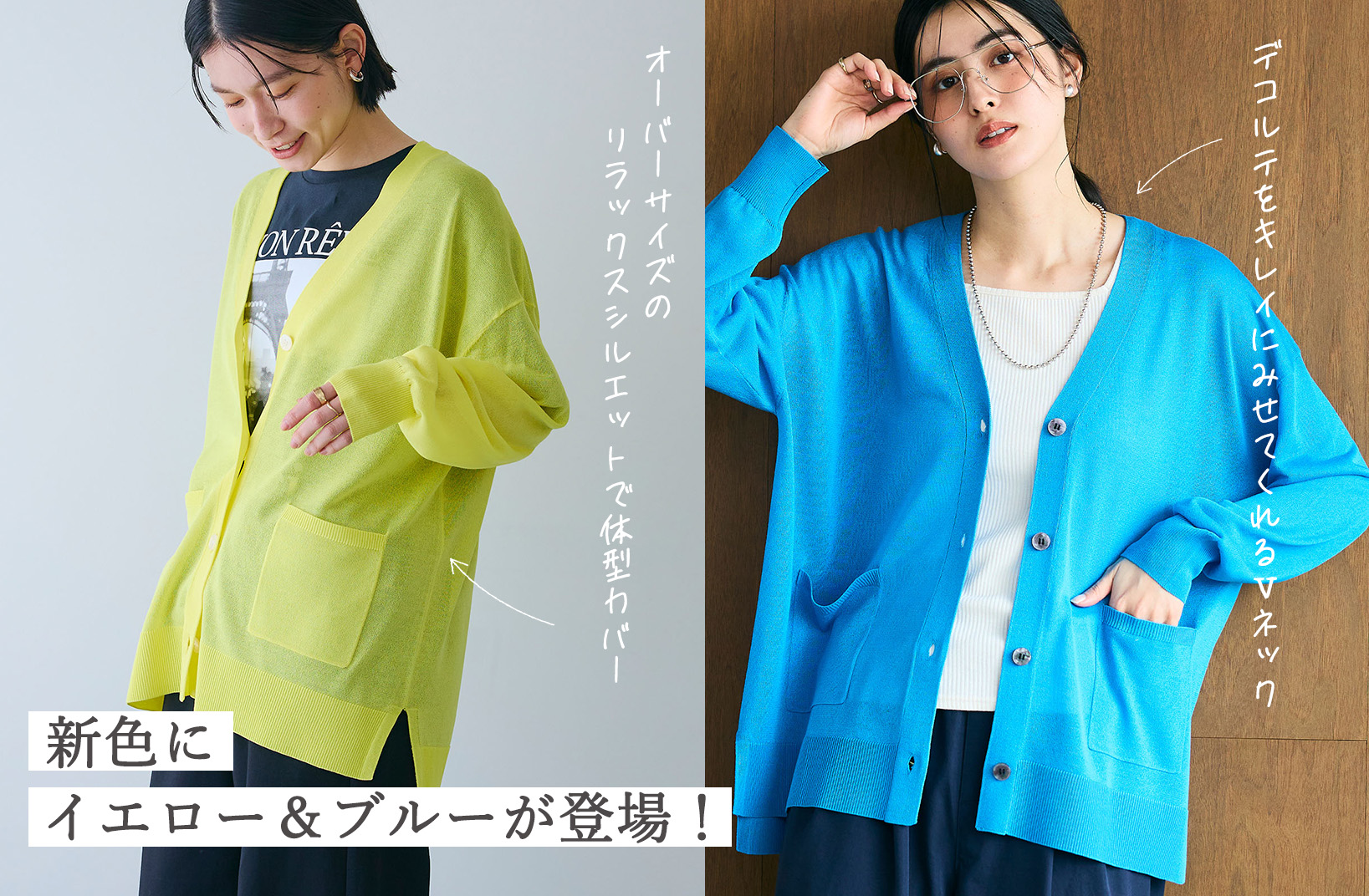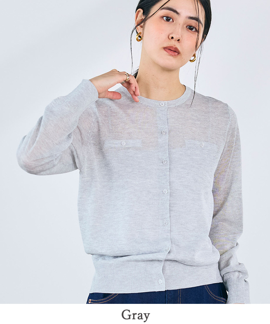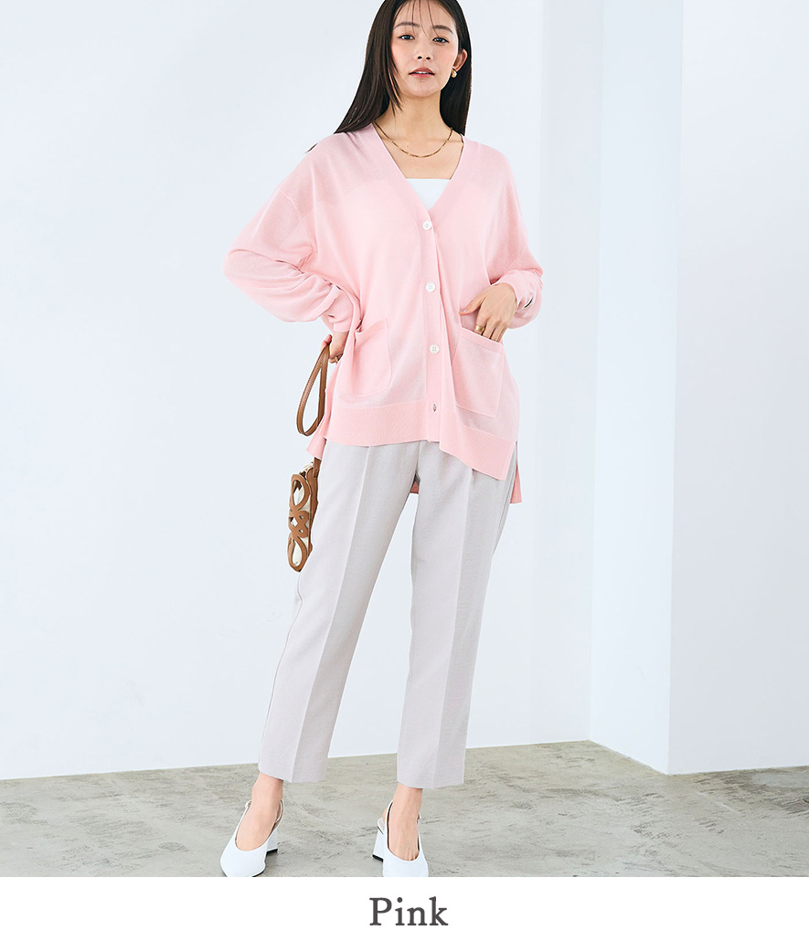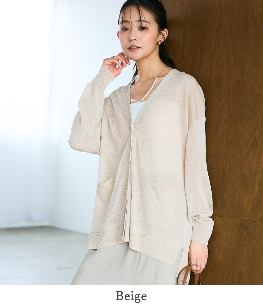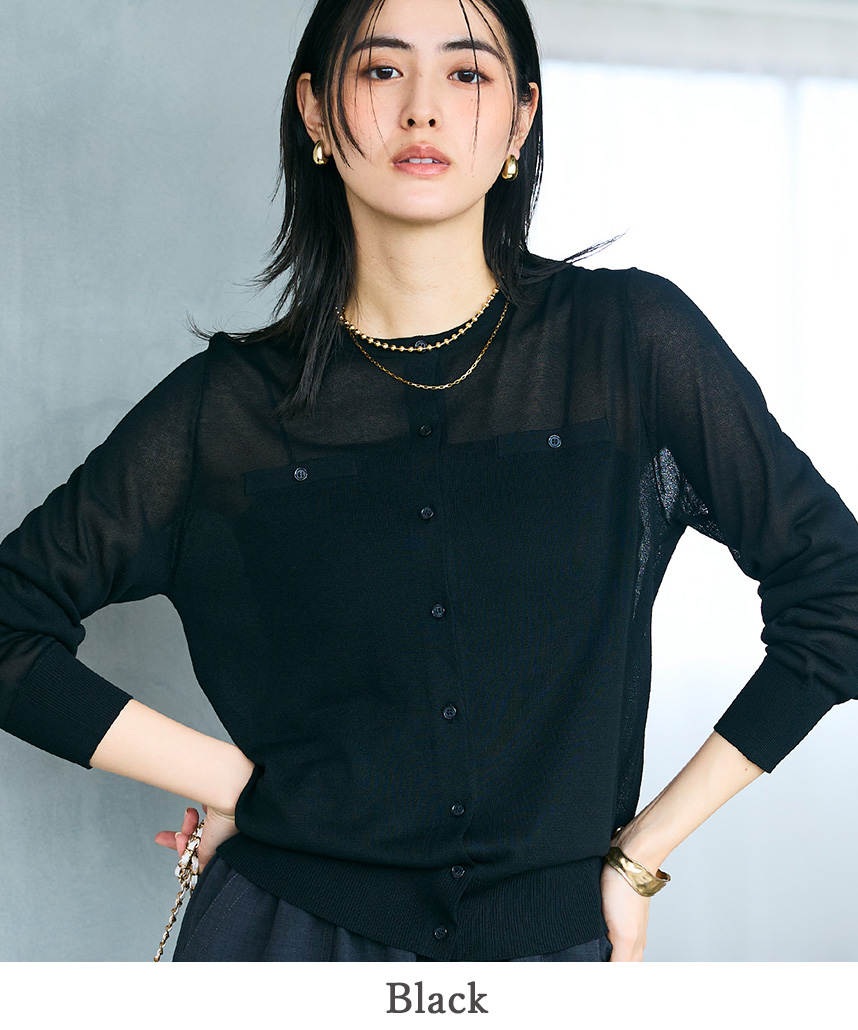 1枚でも羽織りとしても重宝するシアーニットは、 今から夏の終わりまで3シーズン活躍する、持っていて損はない味方服。 シワになりにくくお家でお手入れできる機能美なら、 大人の品格もキープできます。