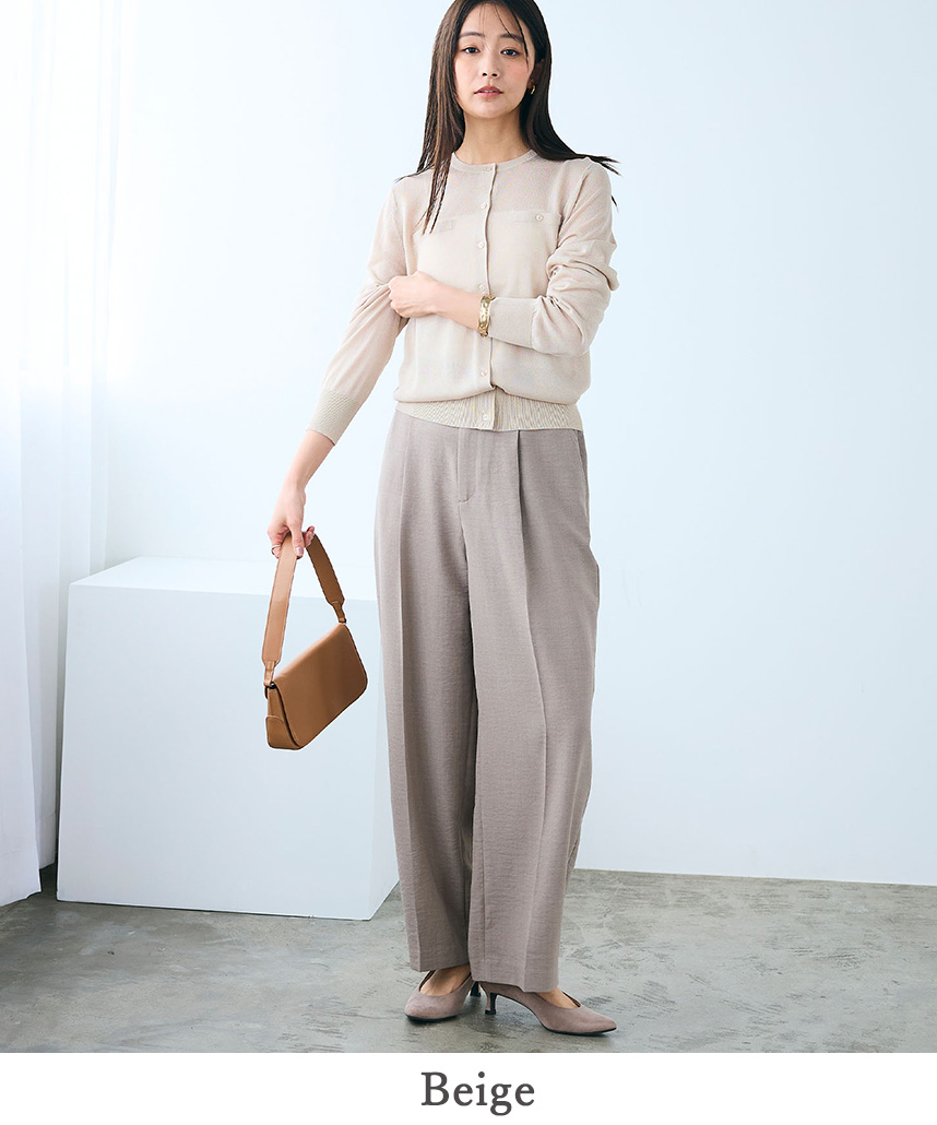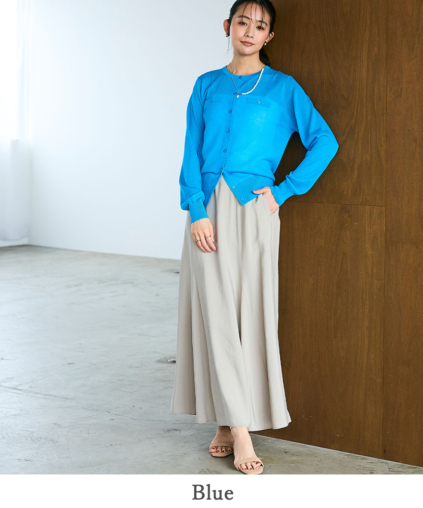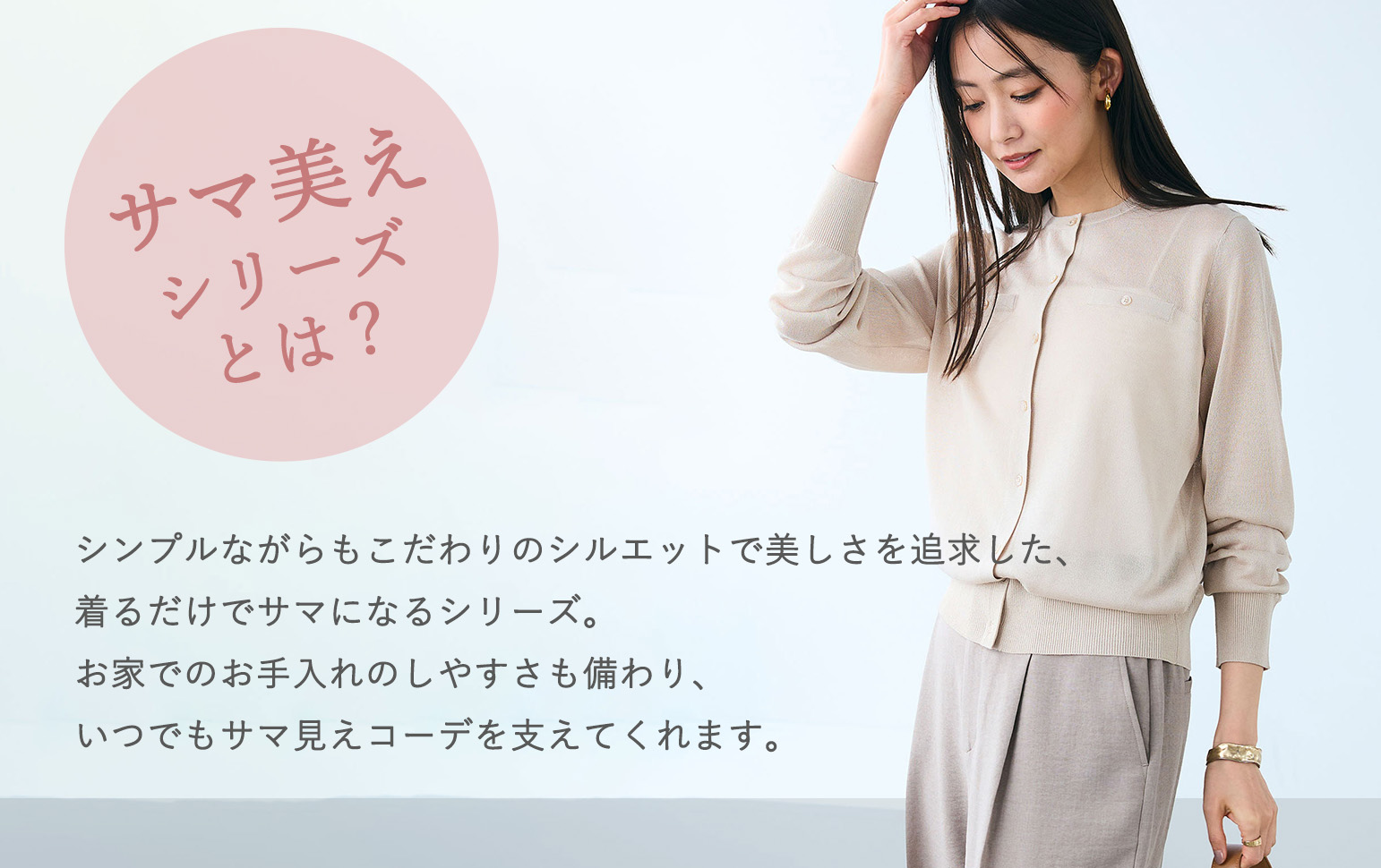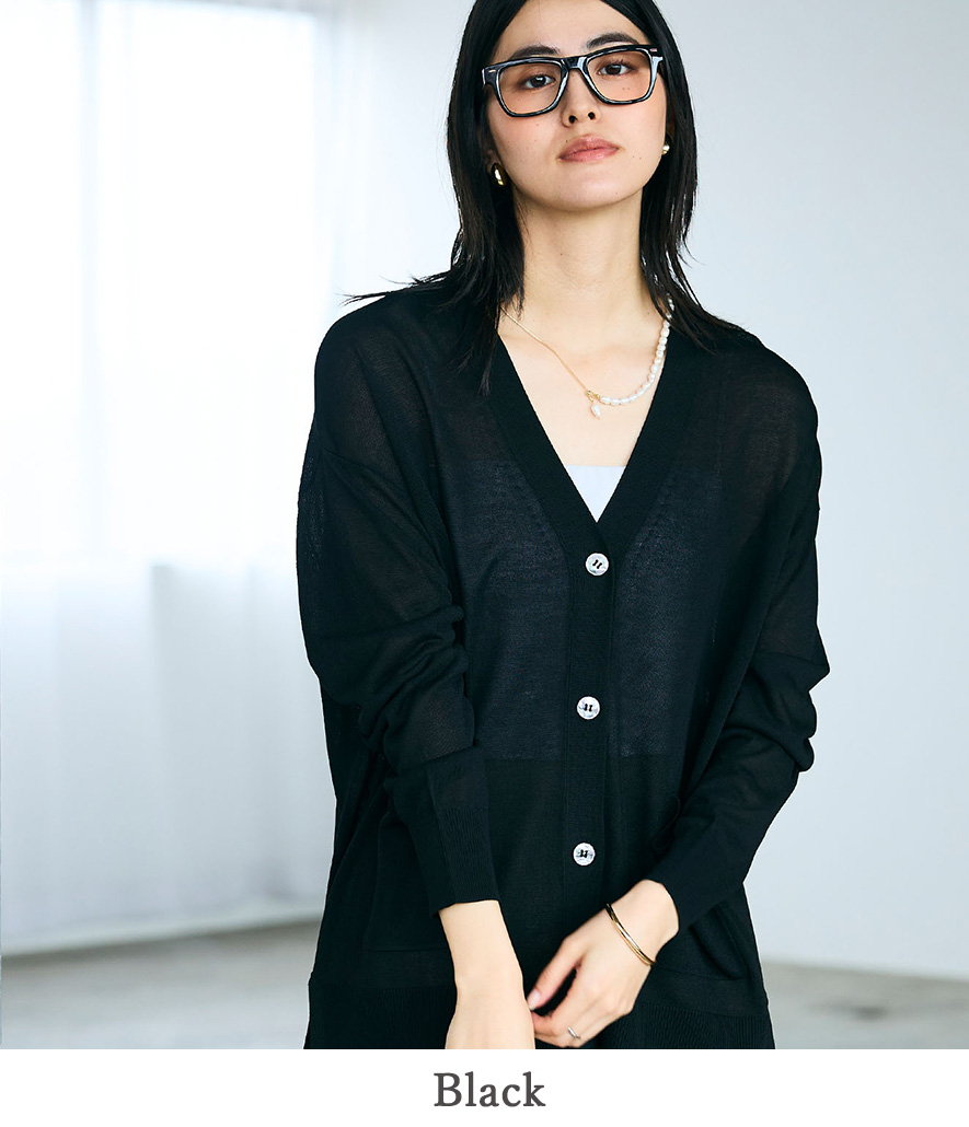 1枚でも羽織りとしても重宝するシアーニットは、 今から夏の終わりまで3シーズン活躍する、持っていて損はない味方服。 シワになりにくくお家でお手入れできる機能美なら、 大人の品格もキープできます。
