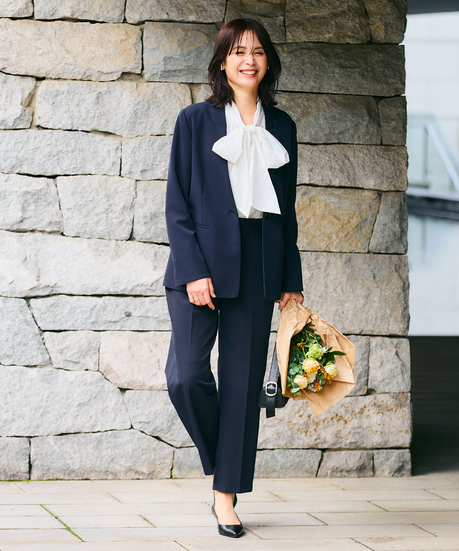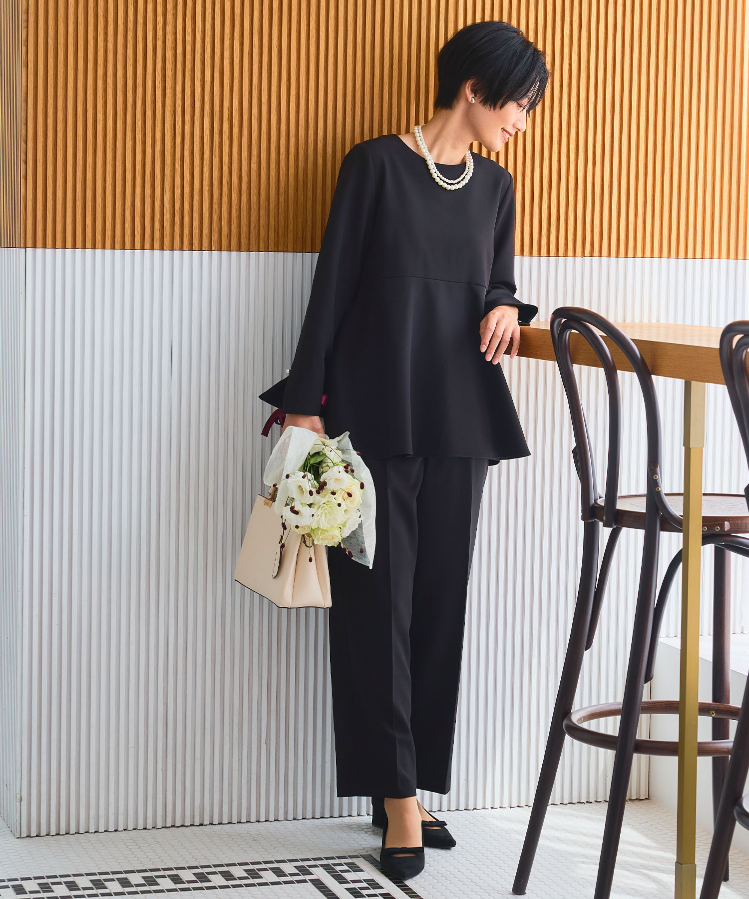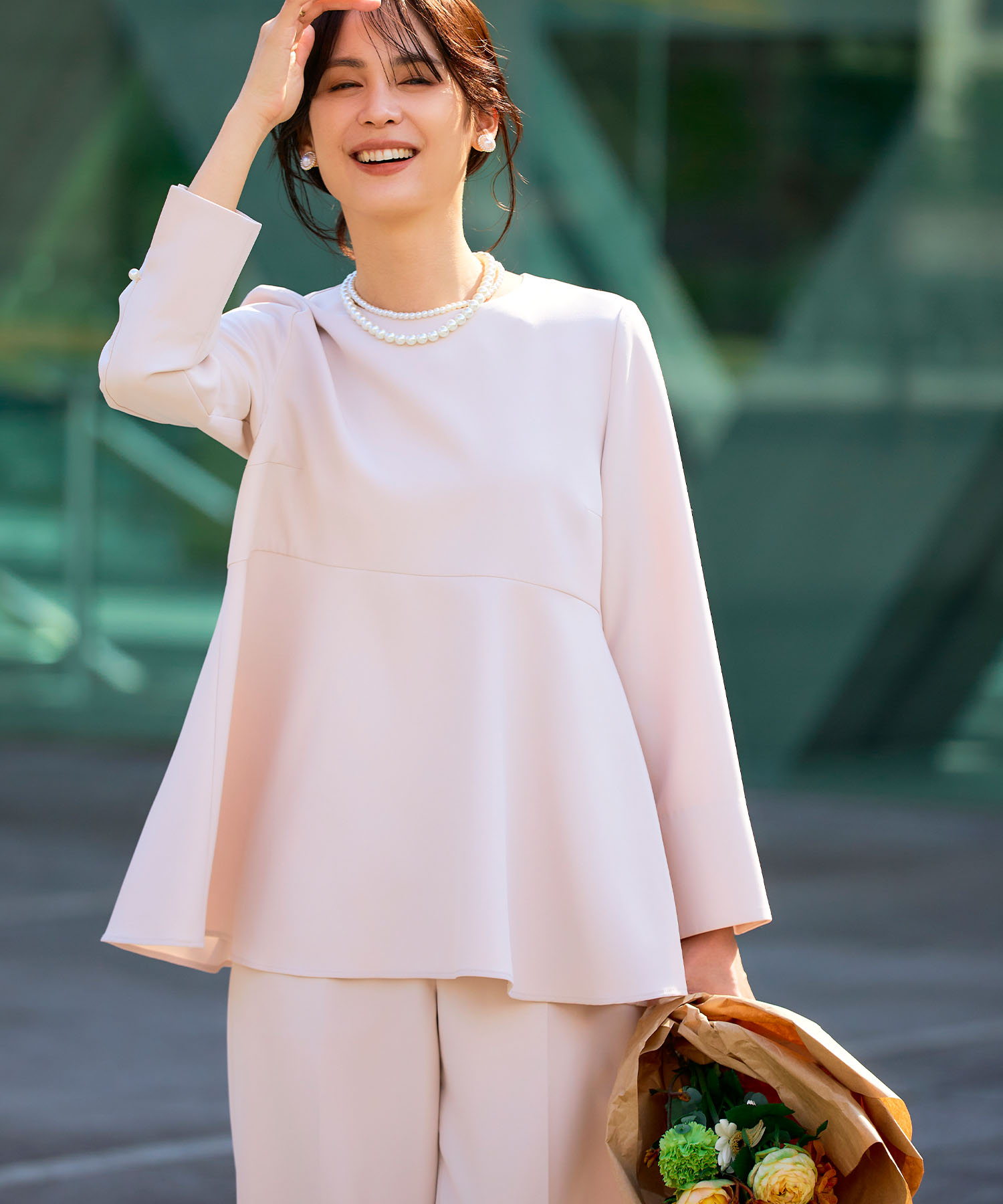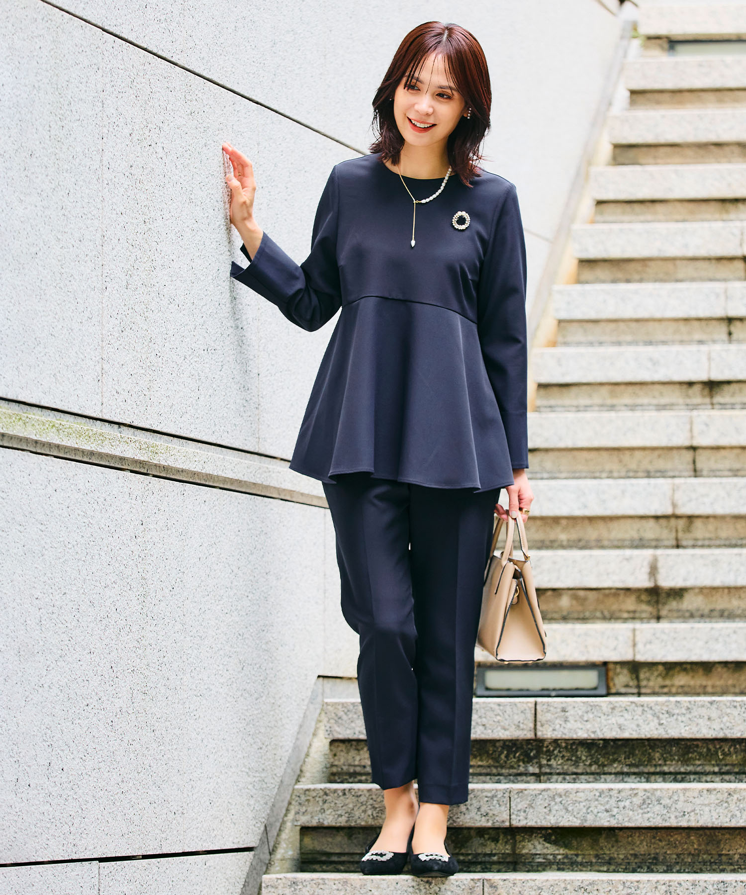 《洗える・シワになりにくい》2点セット 正解 ペプラムブラウス&テーパードパンツ ¥12,100(tax in)