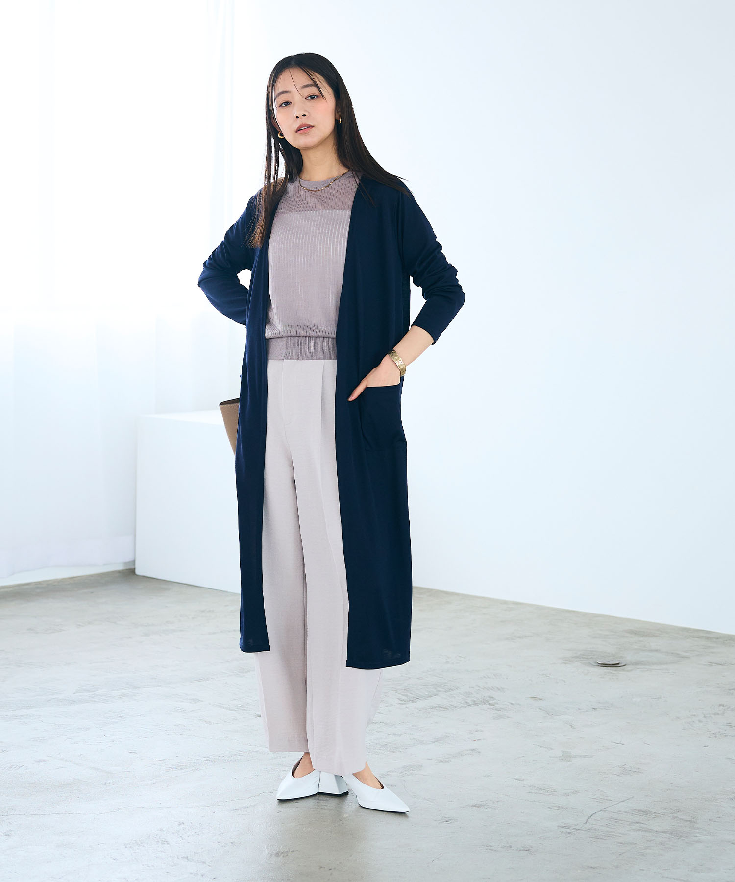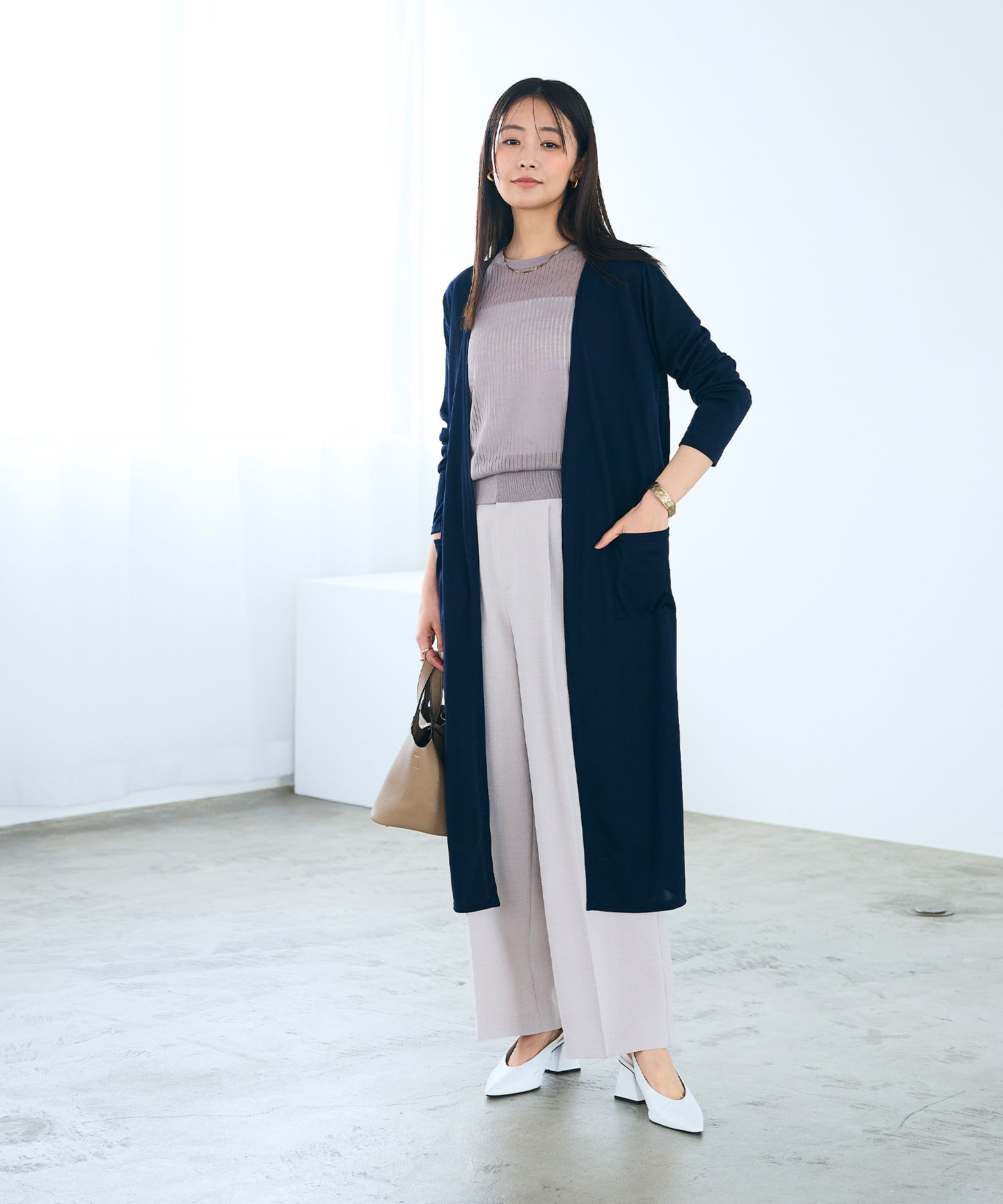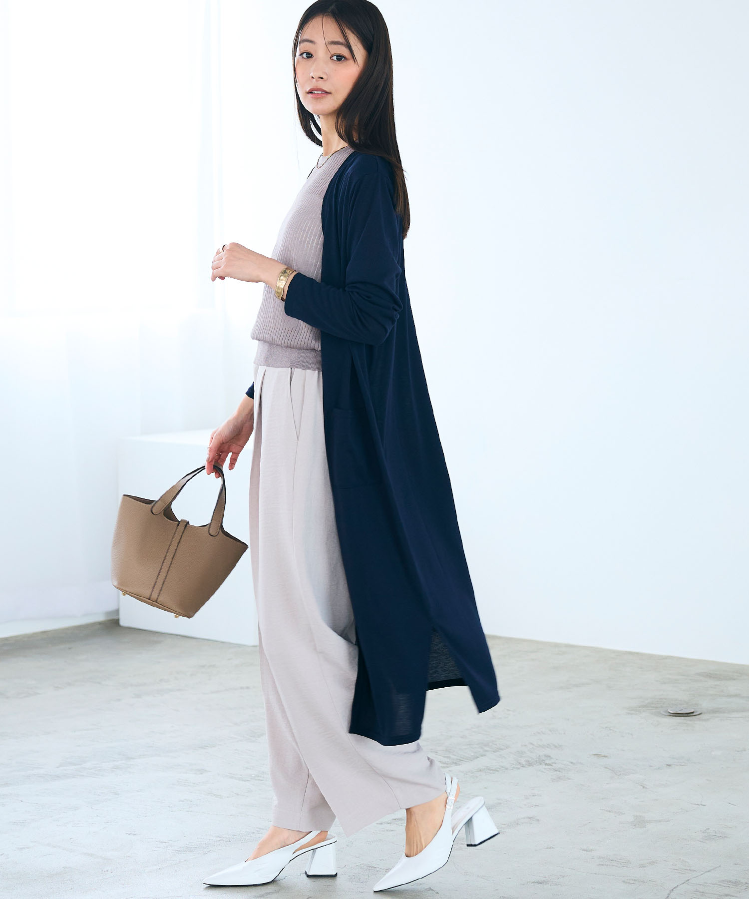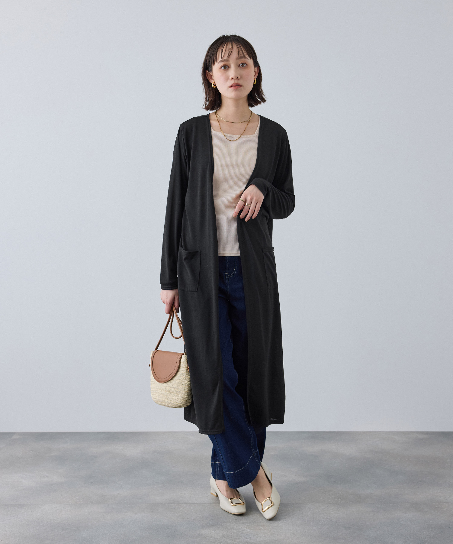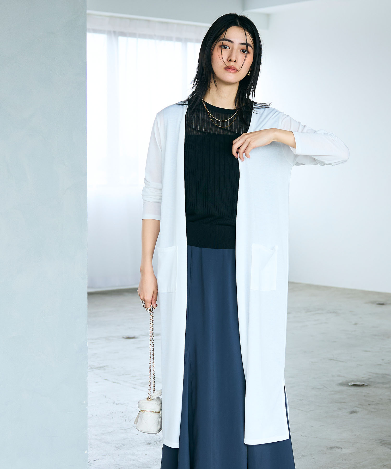 日中は暖かくても、朝晩や室内では少し涼しく感じる最高気温20度の服装には、軽やかに羽織れるシアーカーディガンが活躍。薄手のガーゼ天竺素材でさらっとした着心地が心地よく、季節の変わり目にも快適に過ごせます。ロング丈が縦のラインをきれいに見せながら体型カバーも叶えます。