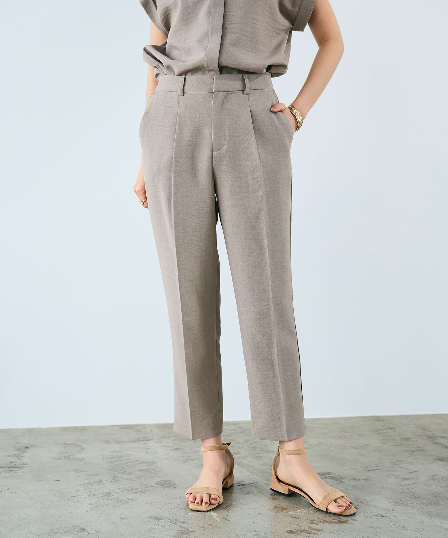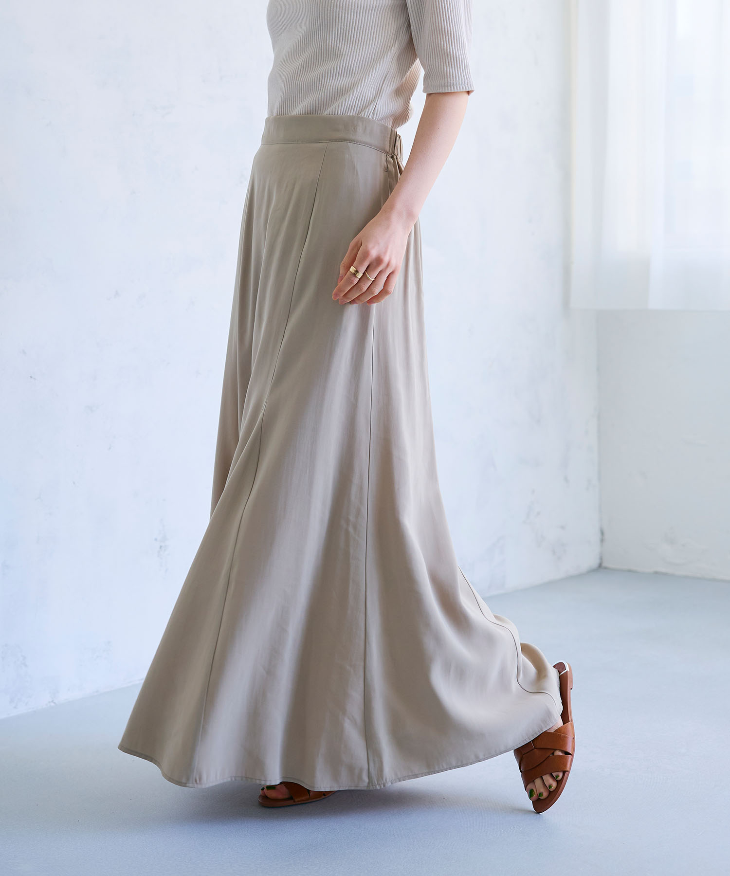 軽やかなはき心地のセミフレアパンツは、最高気温20度の日にも取り入れやすい一本。さらりとした素材で肌離れがよく、吸水速乾や接触冷感などの多機能性が嬉しいポイント。膝位置を高めに設定したフレアラインが脚をすらっと長く見せ、美脚シルエットの服装が叶います。