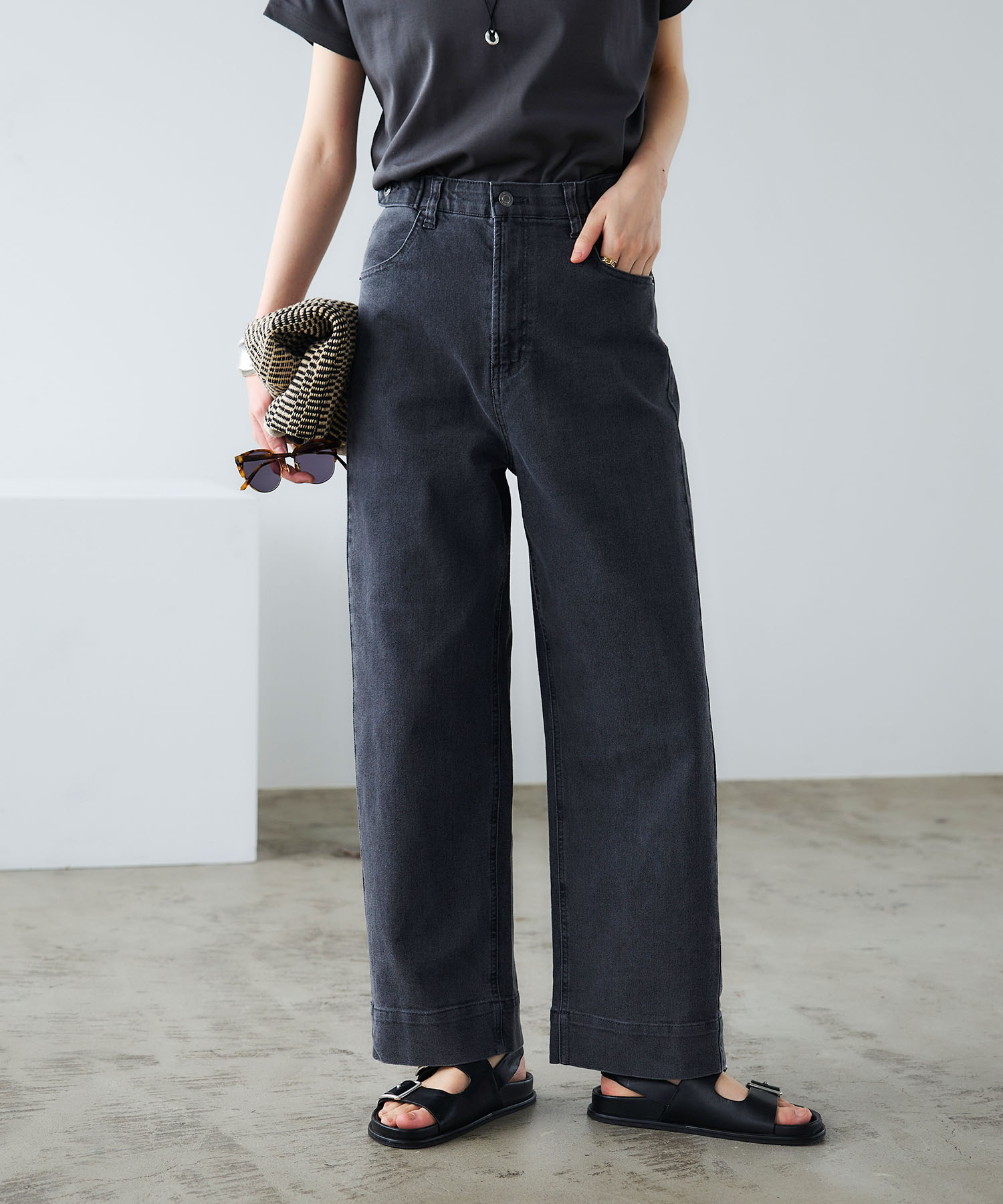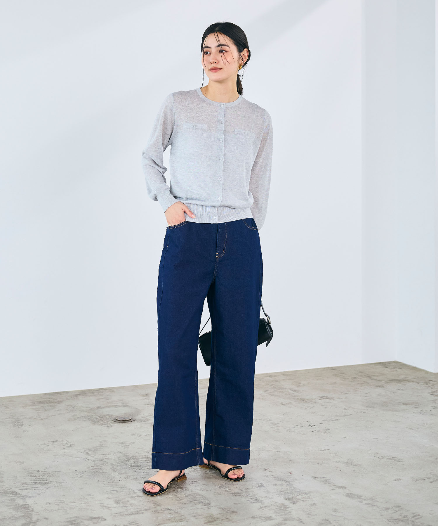 気温20度の“動きやすさもきれい見えも欲しい日”の服装にぴったりなのが、このストレッチのボックスデニム。軽やかなはき心地と伸縮性で、一日中アクティブに動いてもストレスフリー。さらにUVカット機能付きで日差しが気になる季節も安心です。ワイドすぎないシルエットがきちんと感もキープし、通勤から休日までシームレスに活躍する一本。