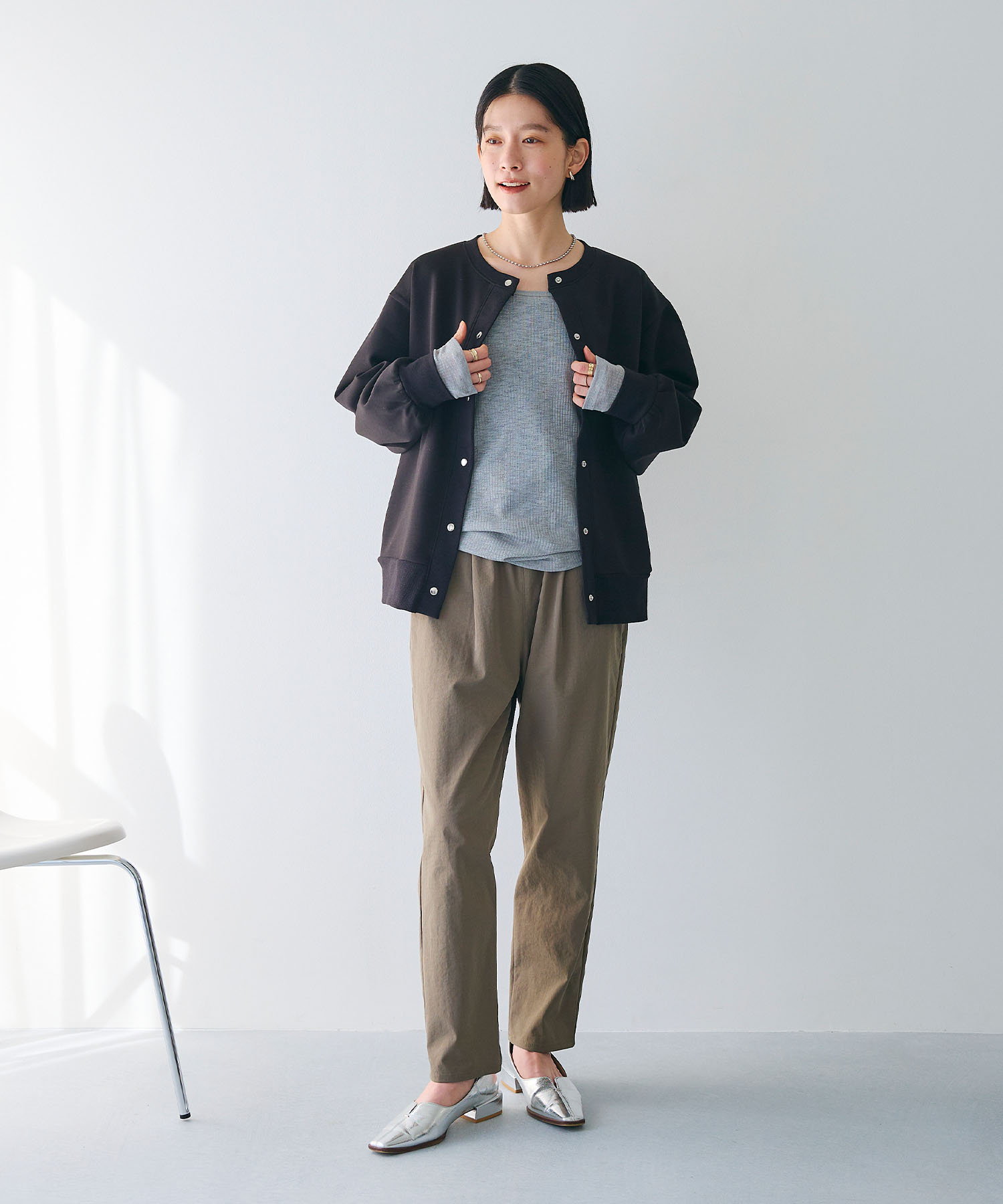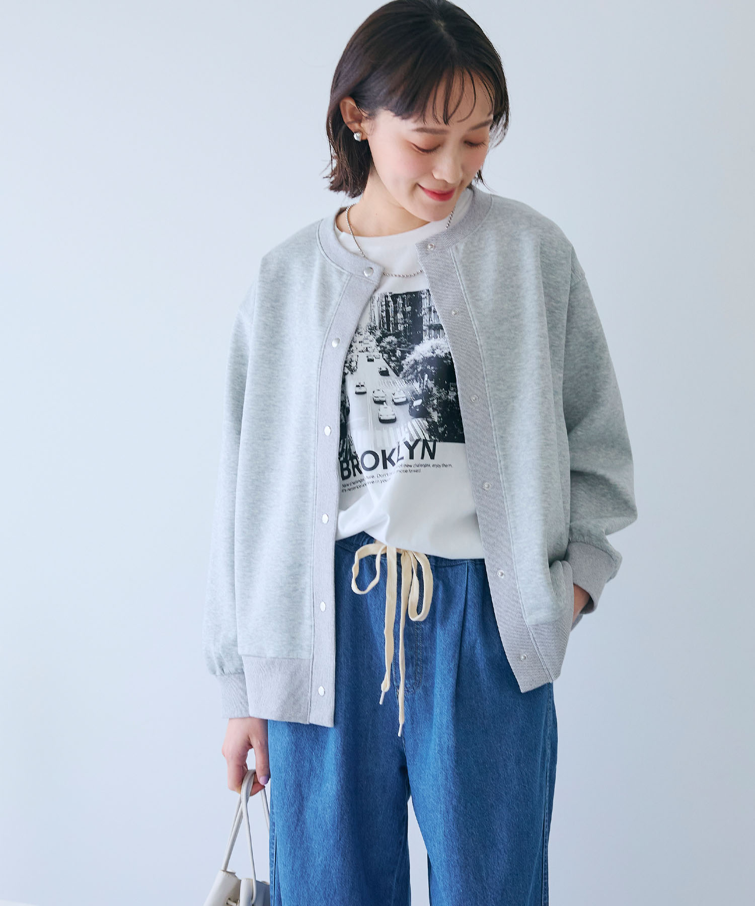 過ごしやすい最高気温20度の日は、ほどよくラフな服装が心地よいバランス。スウェット素材の軽い羽織りをプラスすることで、シンプルなトップスとパンツの組み合わせもぐっと洗練された印象に仕上がります。足元にきれいめシューズを取り入れることで、大人の落ち着きも叶います。