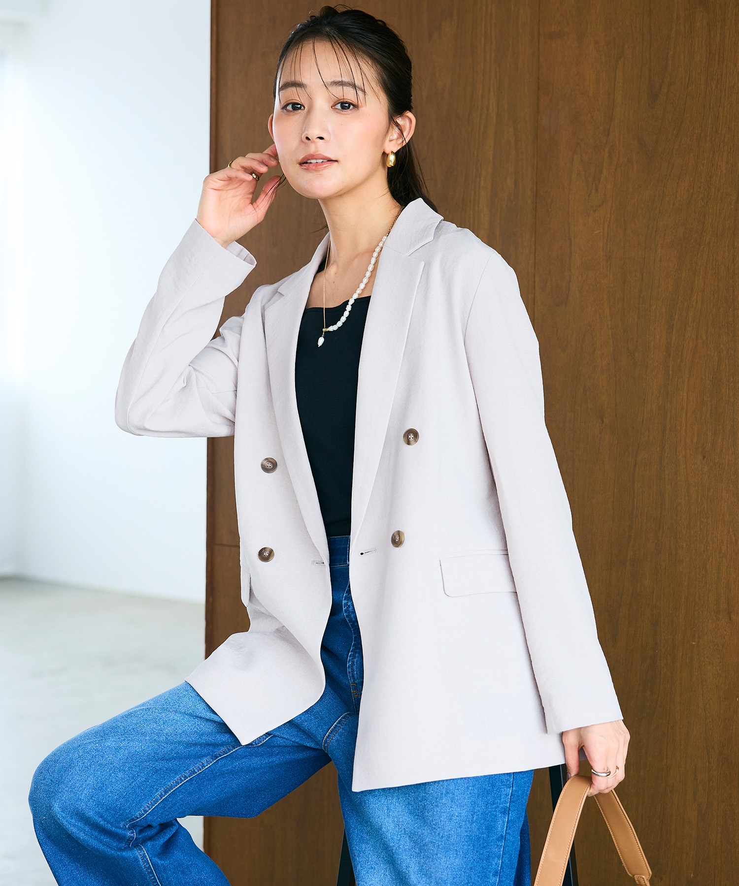 気温20度の軽やかさときちんと感のどちらも欲しい日の服装に頼れるのがリネンライクジャケット。裏地なしの軽い着心地でカーディガン感覚に羽織れ、朝晩の気温差にも対応できる服装に。シワになりにくく自宅で洗えるイージーケア仕様で、忙しいママの毎日の服装にフィットします。
