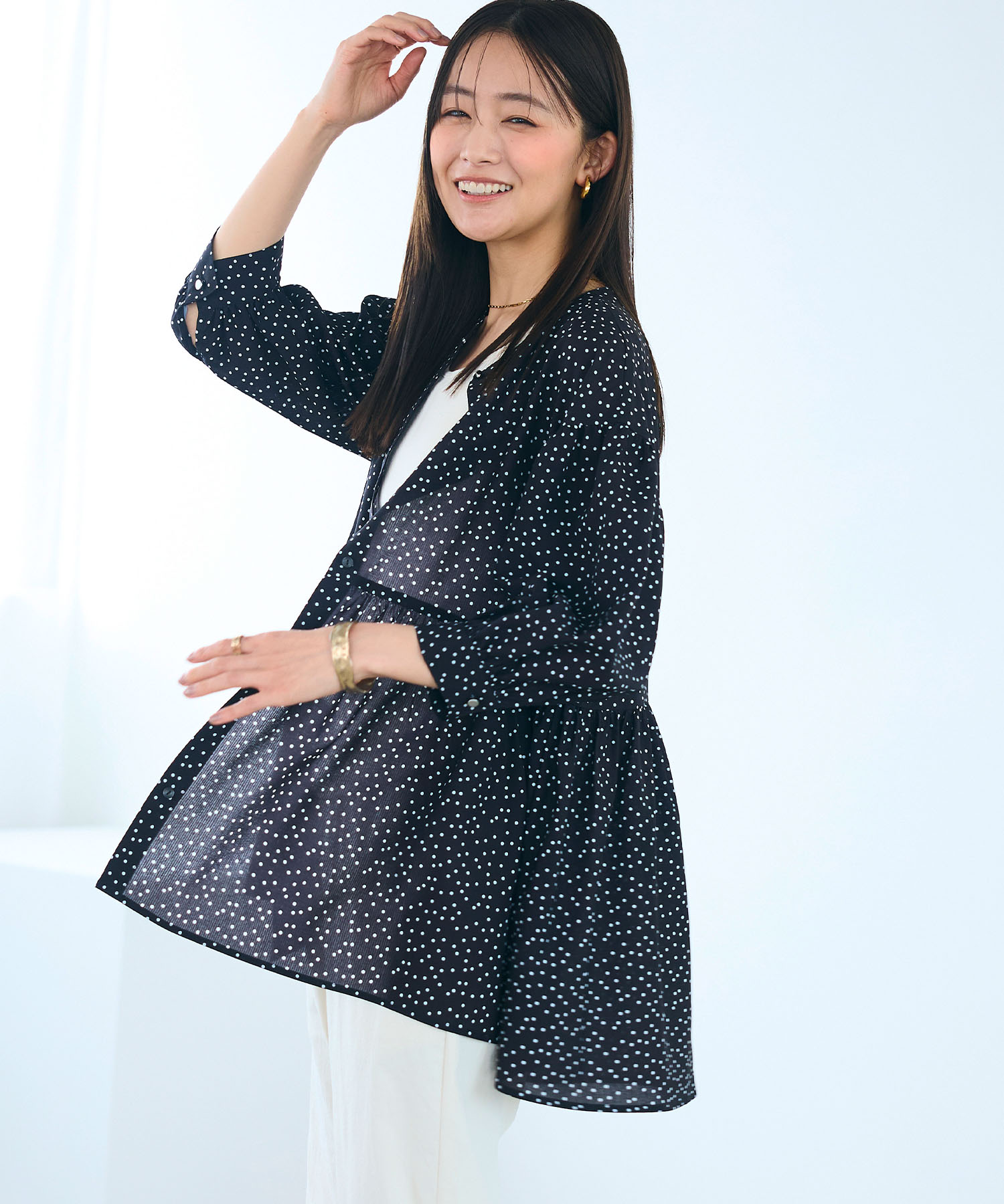 軽やかなサッカー素材を使用したペプラムブラウスは、通気性がよくさらりとした着心地で最高気温20度の日にも快適に着られる一枚。吸水速乾や接触冷感などの機能も備えており、日中の外出でも心地よく過ごせます。ふんわりと広がるペプラムシルエットが体のラインを自然にカバーし、パンツと合わせるだけで華やかさのある大人の服装が完成します。