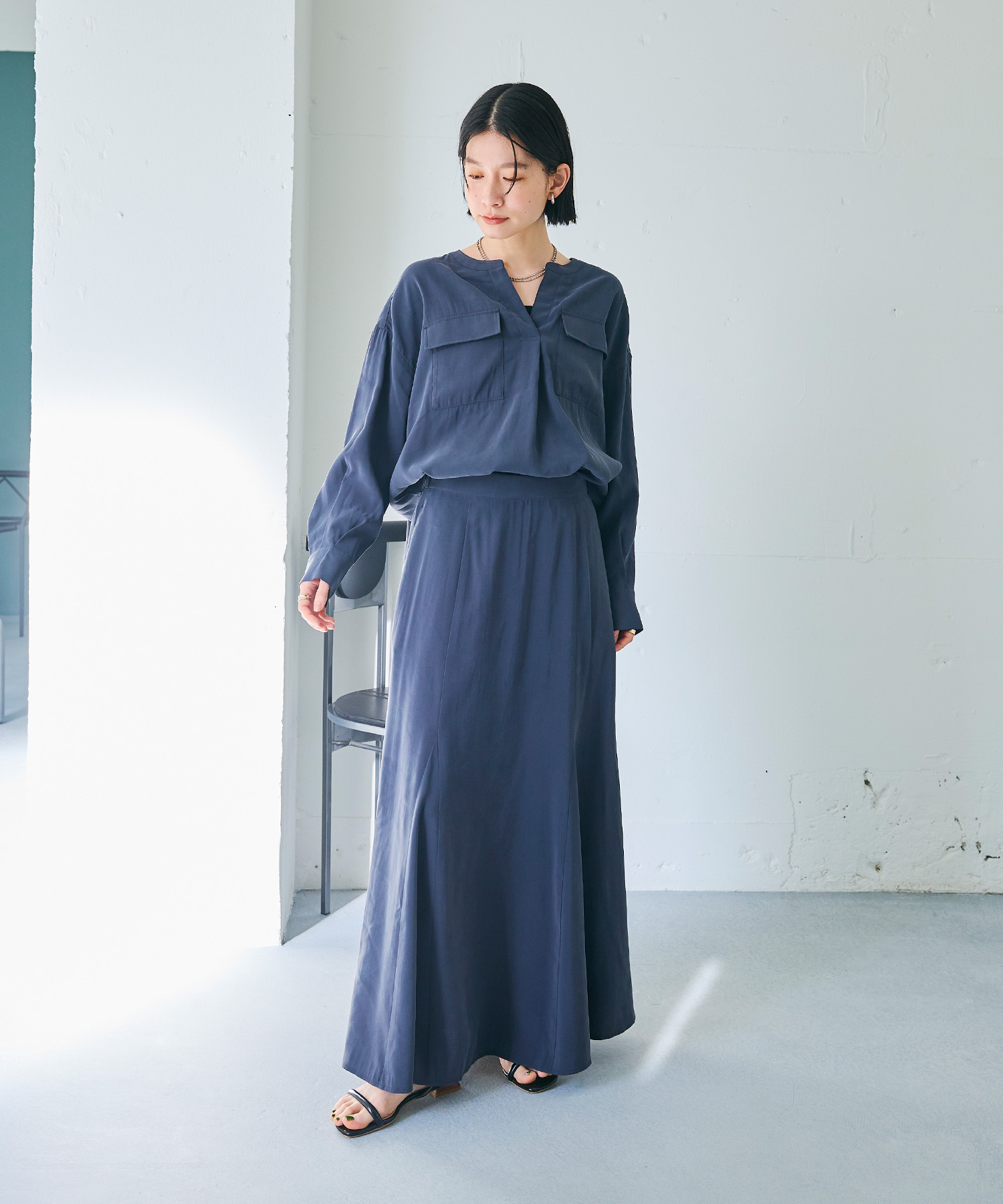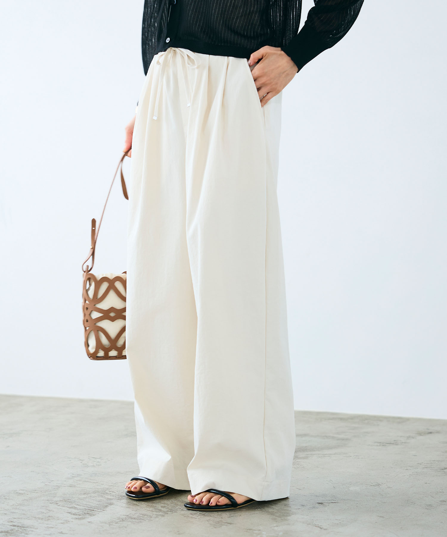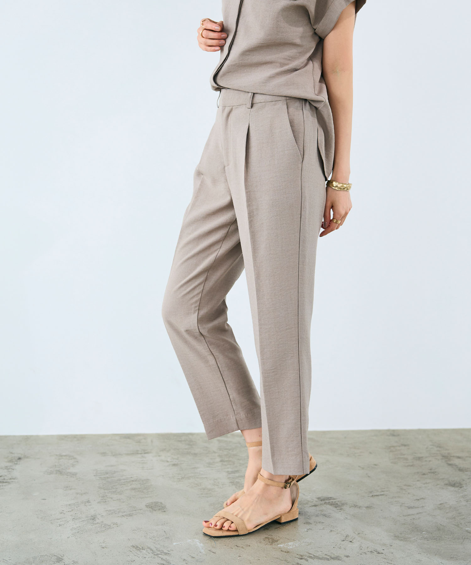 同じ春カラーでも、素材やシルエットによって印象が変わります。リネンライク素材や落ち感のあるポリエステル素材など、軽やかで品のある質感を選ぶことで、カラーアイテムでも大人らしい上品な春カラーコーデに。さらに、きれいなラインのシルエットを意識することで、より洗練された印象に仕上がります。