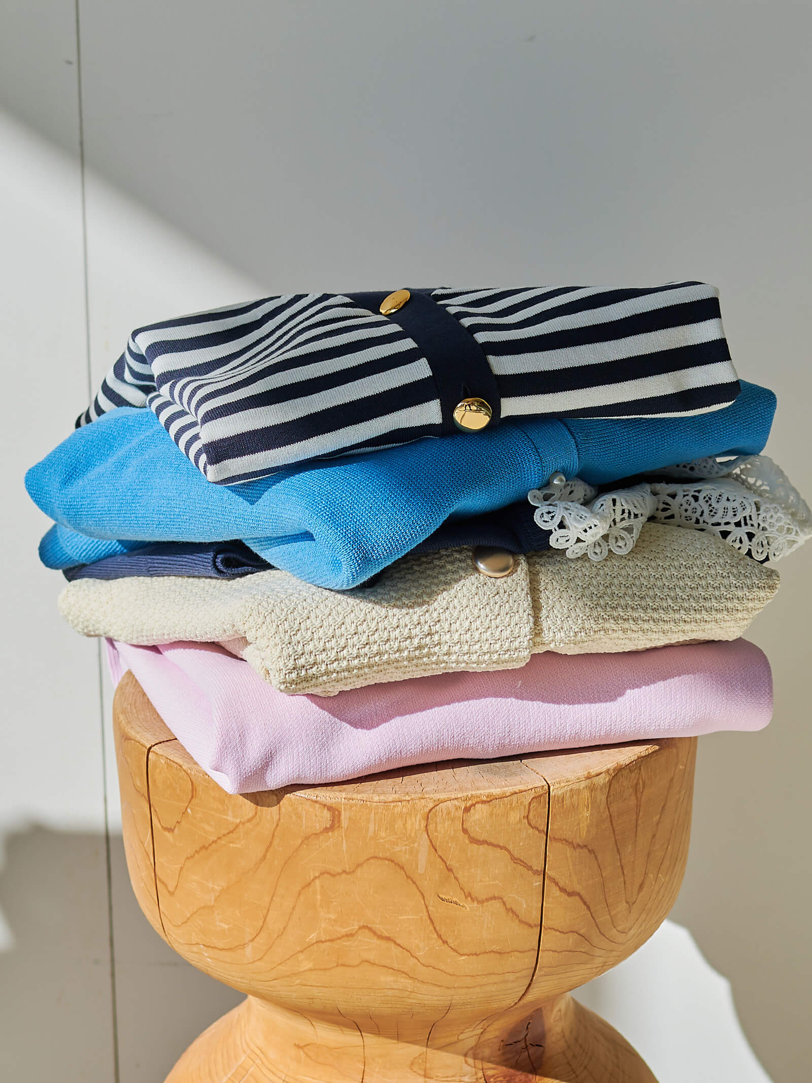 気温調整がしやすいカーディガンは、春コーデに欠かせないアイテム。ベーシックなスタイルに羽織るだけで、コーデに春カラーをプラスできます。肩掛けや羽織りなどさまざまな着こなしが楽しめるため、働くママのデイリーコーデにも活躍。通勤から休日まで幅広いシーンで使える便利なアイテムです。