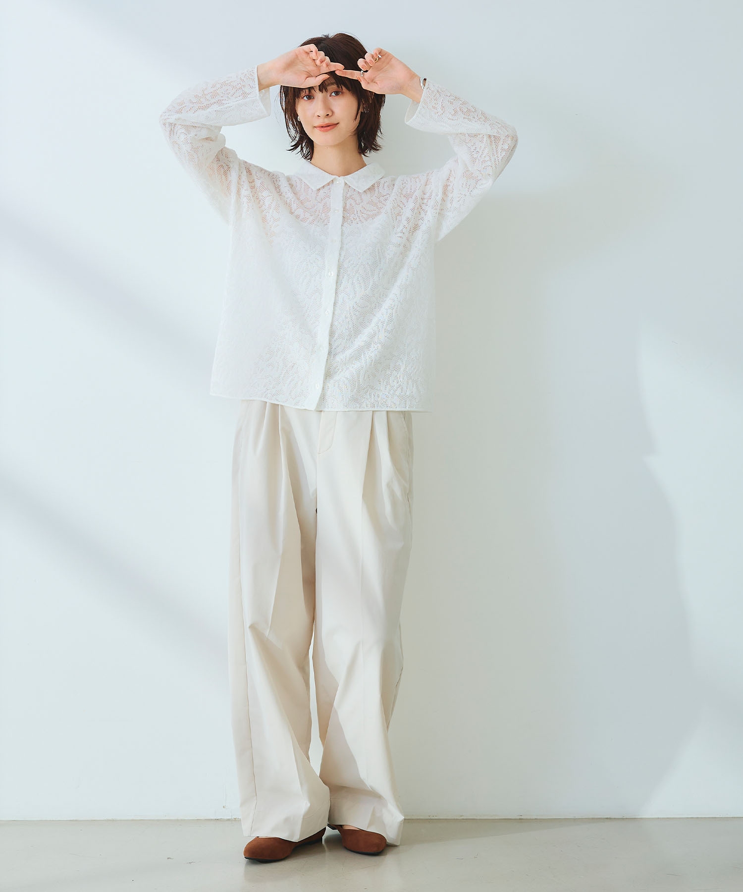 上品な透け感と立体感のあるレース素材が秋らしさを演出してくれるシャツ見えニット。羽織りとしても活躍し、着るだけで秋コーデに品よく華やぎを添えてくれます。自宅で手軽にお手入れできるため、デイリーに着回せるアイテムです。