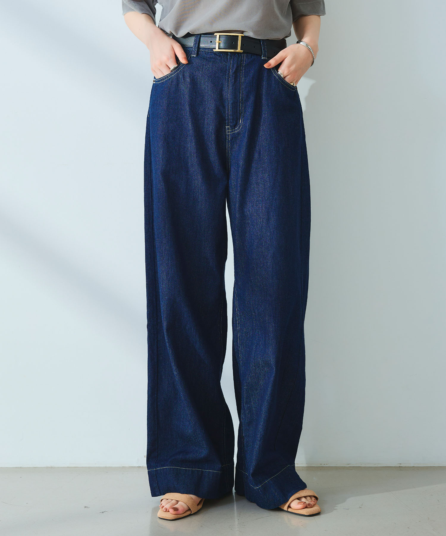 ラフに穿けるゆったりシルエットながら、すっきりとしたバランスの良い大人デニム。スウェットやスニーカーを合わせればカジュアルな休日スタイルに。シャツやカーデを羽織れば、秋らしい季節感コーデを演出できます。