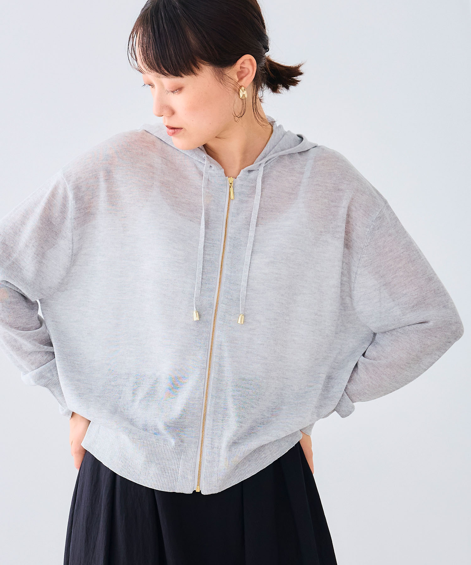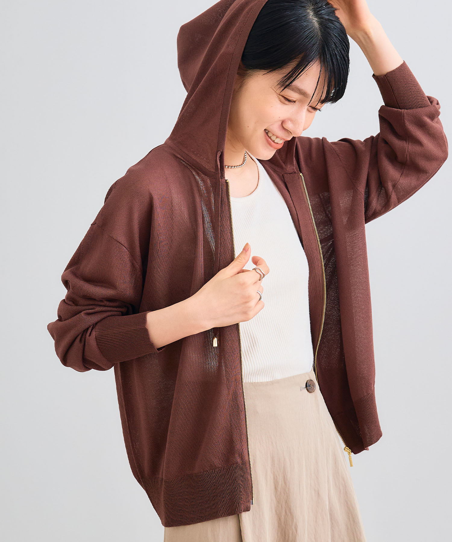 涼しさを感じながら羽織れる接触冷感付きのシアーZIPパーカーは、最低気温25度の秋に欠かせない1枚。レイヤードの奥行きを出しつつ、気温調整も自在にコンパクトに収納できるため、ワードローブに入れておきたい重宝アイテムです。