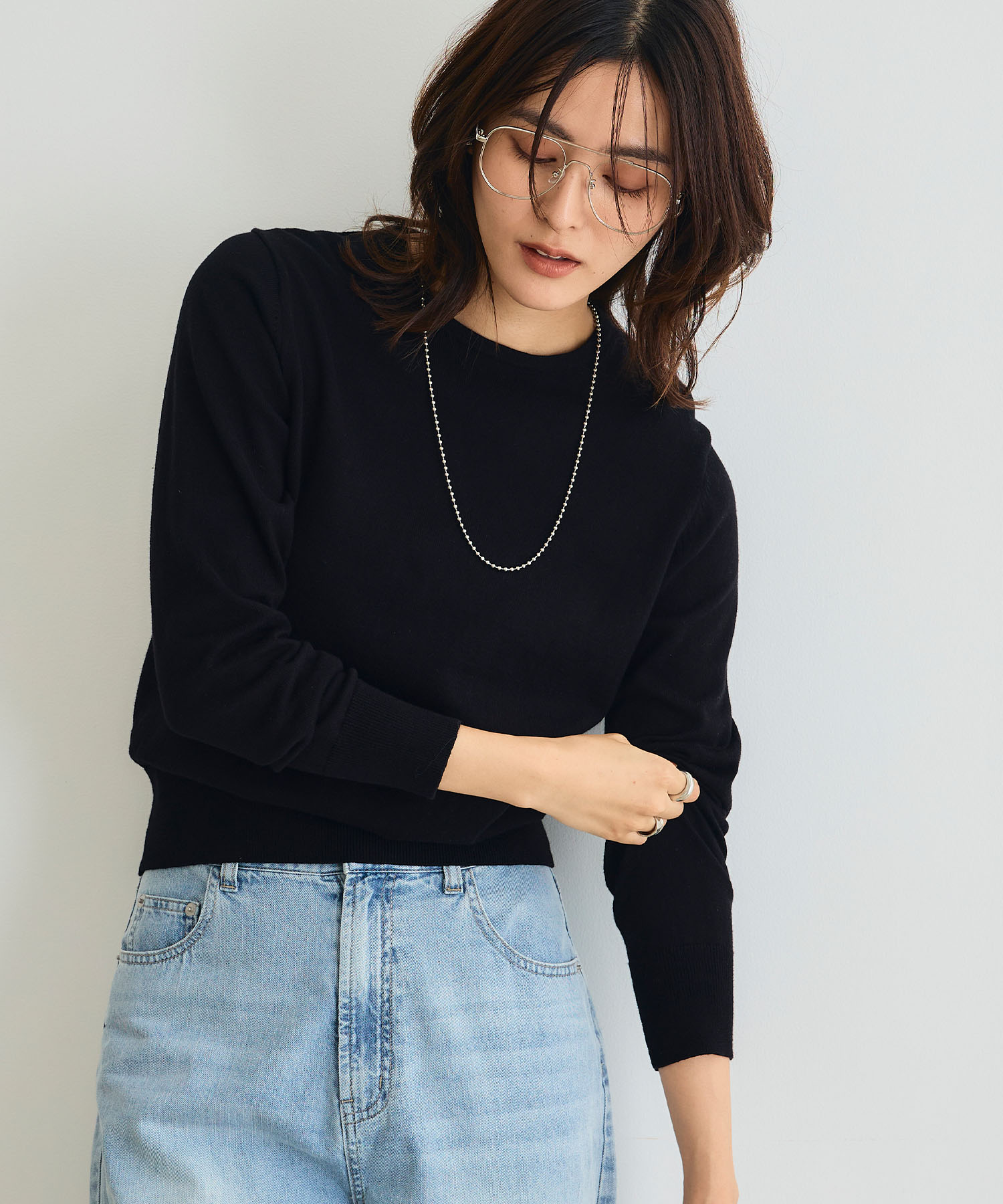王道のブラックはどんなシーンでも大活躍。デイリーに着回すならデニムコーデがおすすめ。大人の定番として長く愛用できるスタイルです。