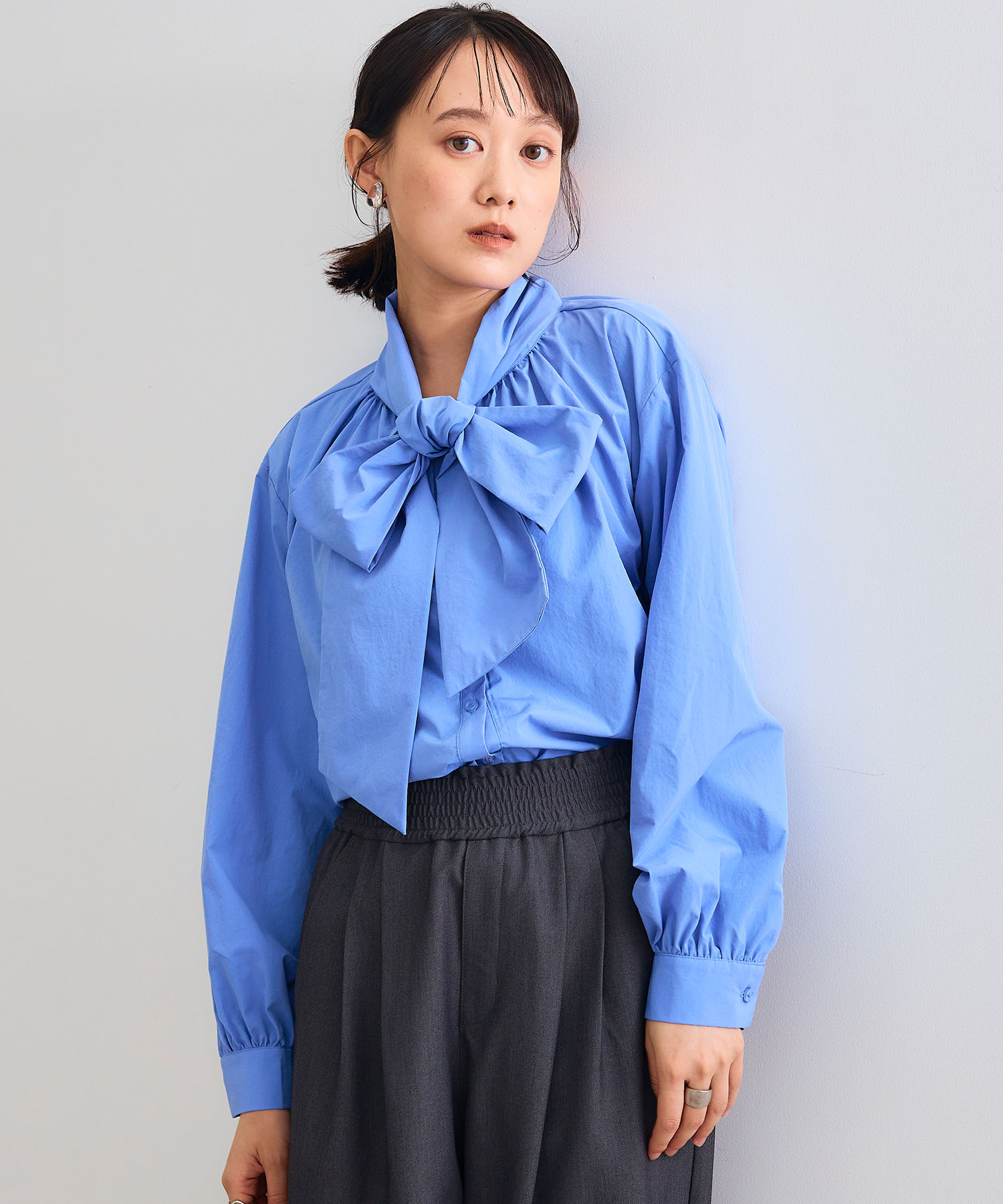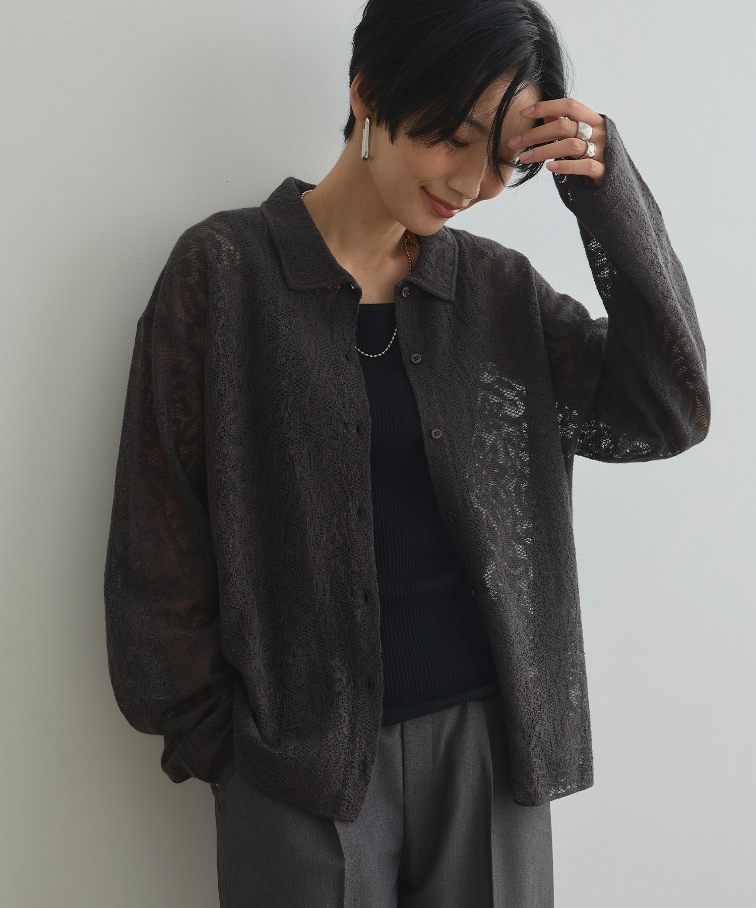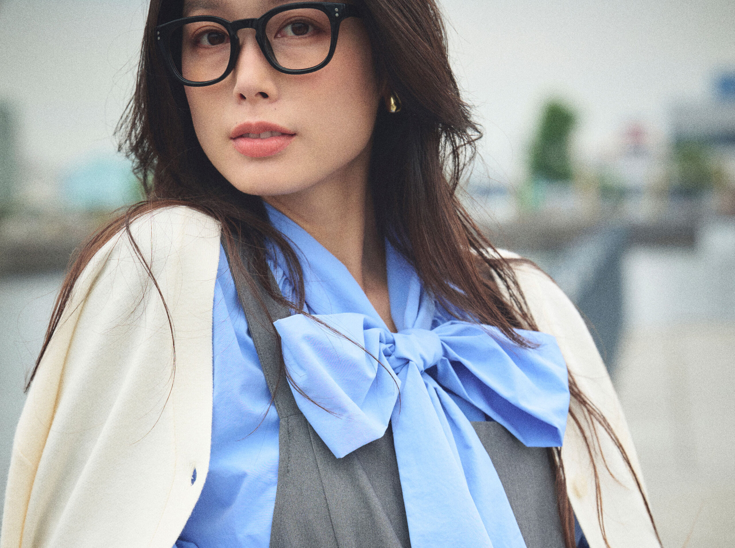 首元のレース襟は表情を明るく見せ、縦ラインを強調するストレートパンツはシルエットのまとめ役に。かしこまりすぎず、きちんと感も忘れない、デイリーに頼れるオフィスカジュアルです。