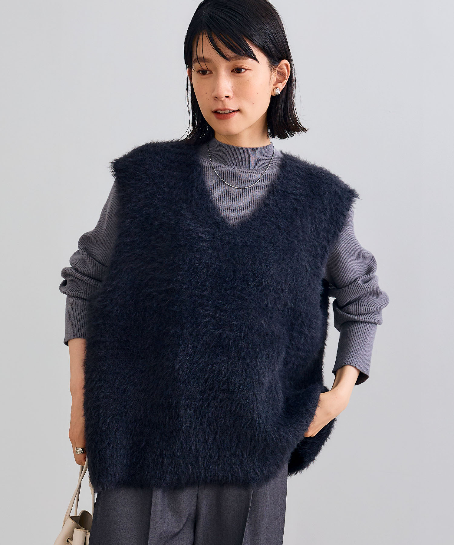 ふんわりニットにジャケットコートを重ねれば、冬らしい暖かさと女性らしい優しさが両立。全体が淡くまとまることで、重く暗くなりがちな冬のオフィスコーデが華やかに完成します。