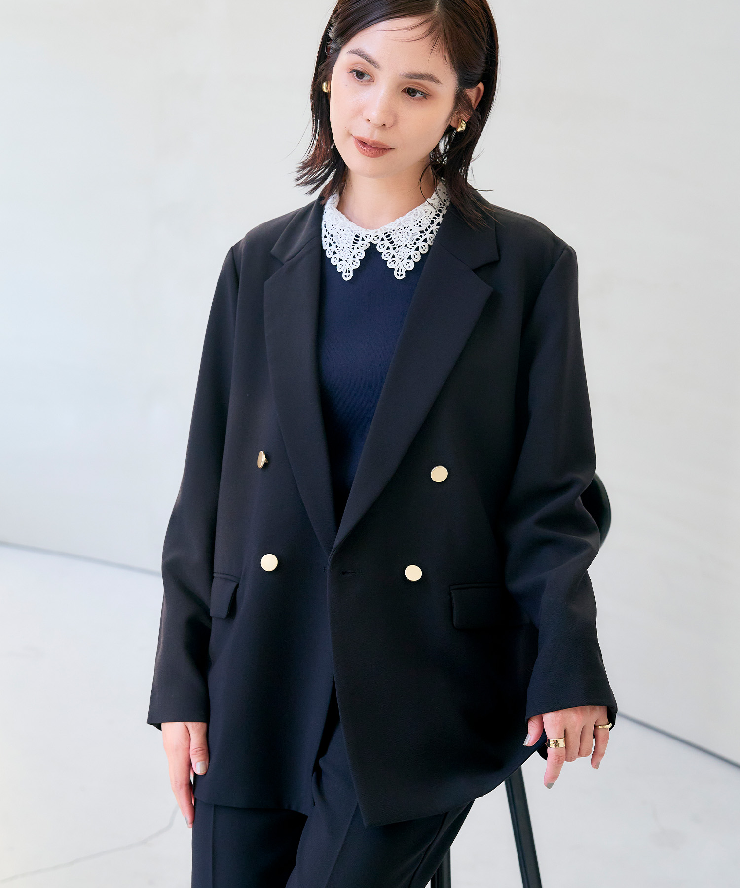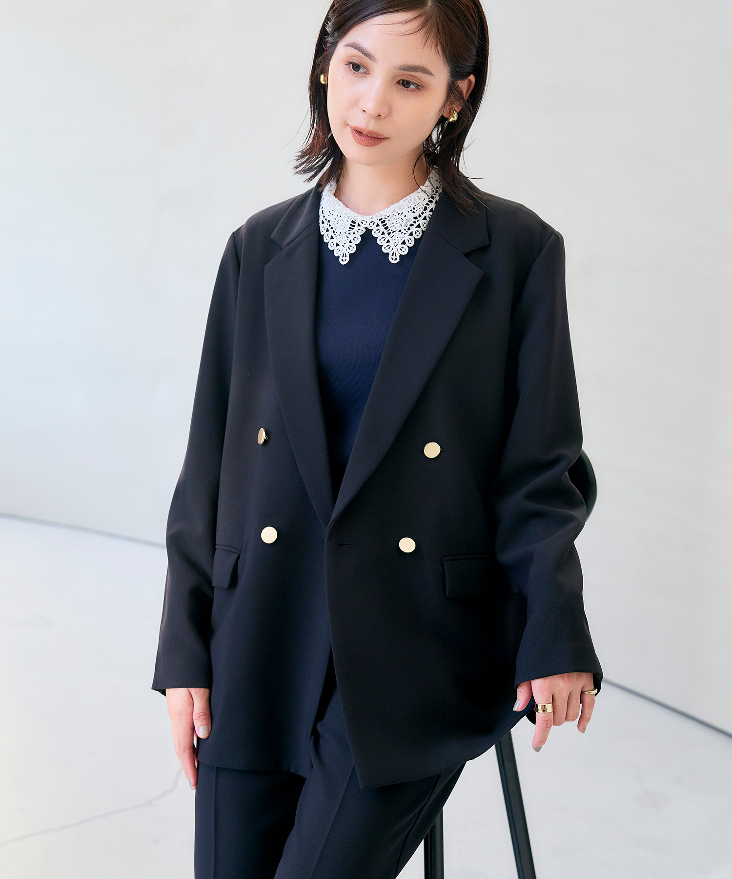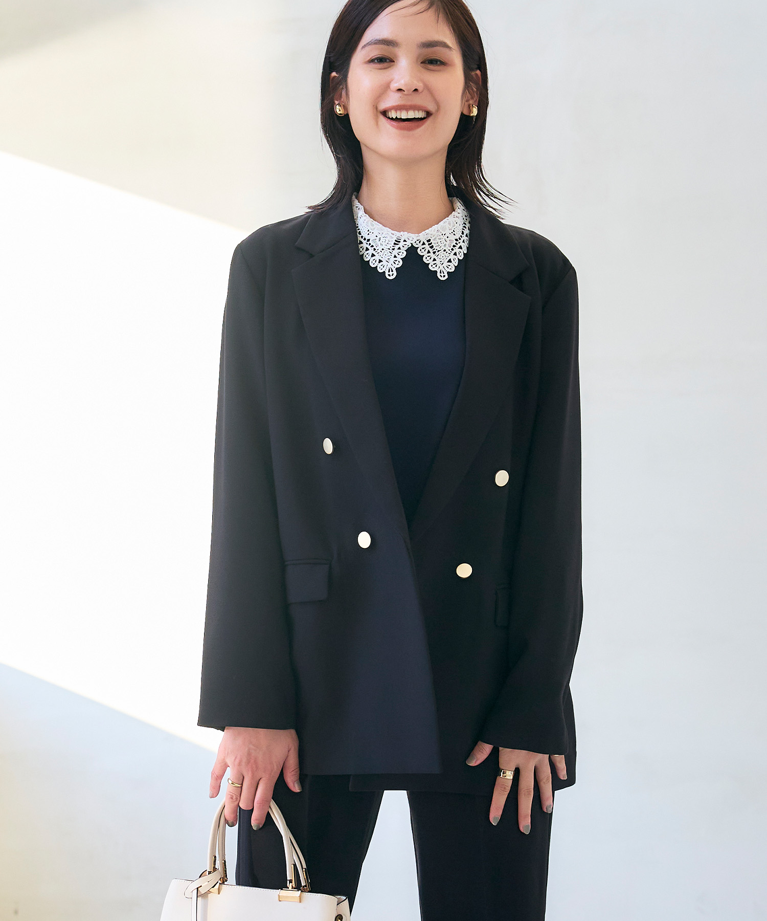 品の良さと今っぽさが両立したハレの日最強コスパ服。ダブル仕立ての程よい重厚感と金釦が全体bを引き締め、一枚でぐっとこなれた印象に仕上がります。