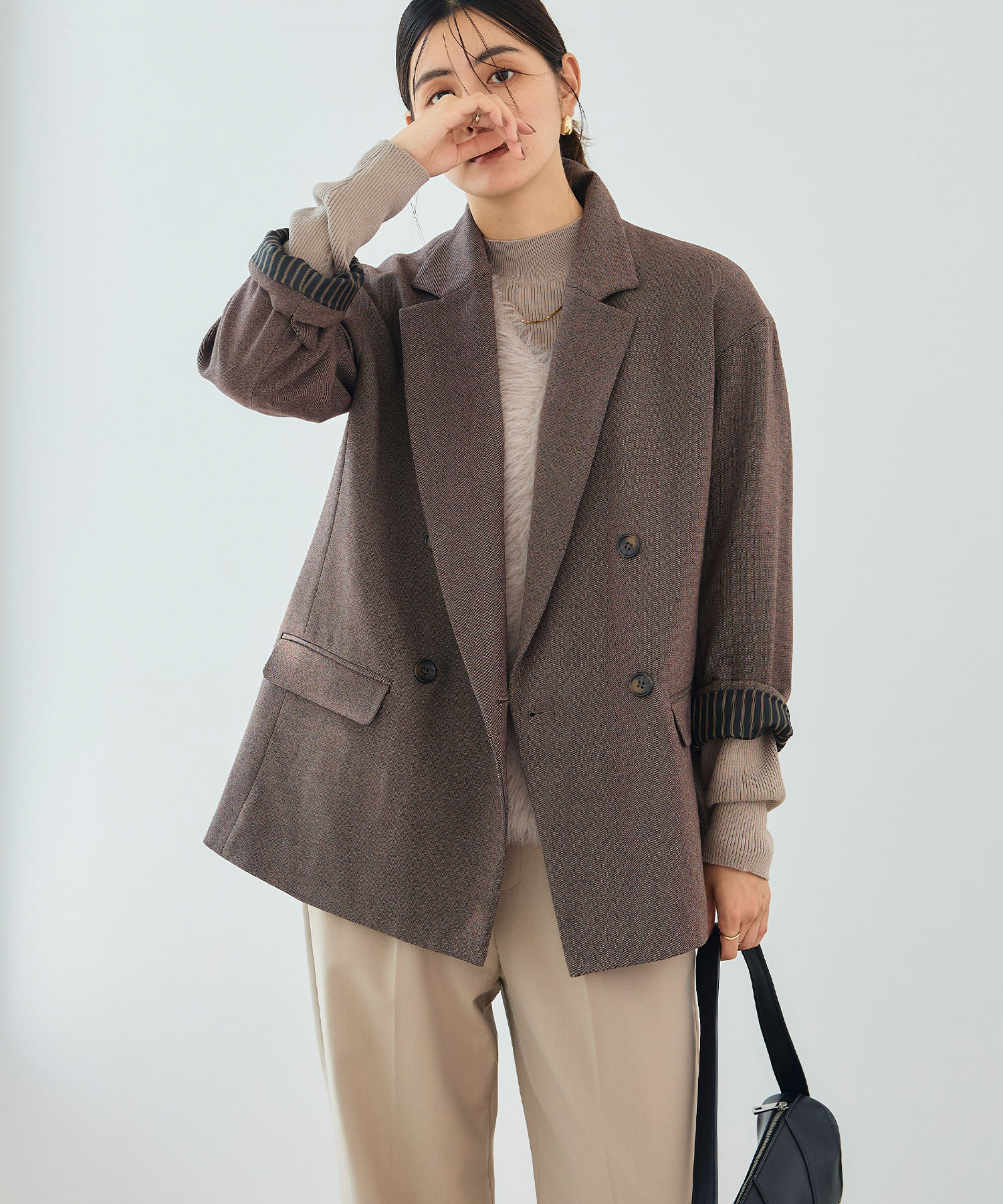 ひんやりした日もしっかり暖かく、やさしく包んでくれる上品なジャケットコート。適度な厚みがありながら軽やかな着心地もポイント。落ち着いた色味がコーデ全体をきれいに引き締め、大人の冬スタイルをほどよく格上げしてくれます。