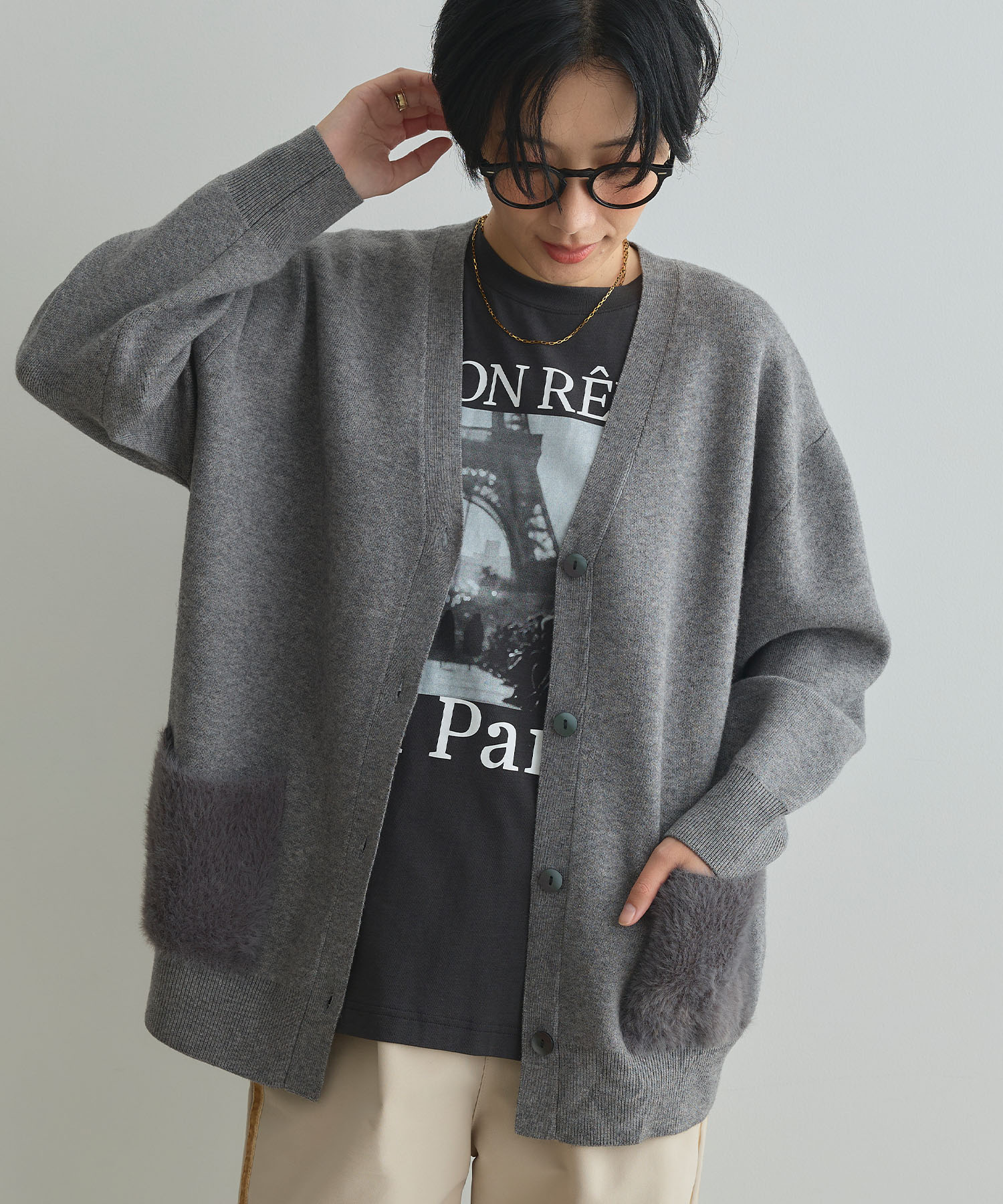 朝晩の気温差を感じやすい最低気温12度の日は、重ね着しやすいアイテム選びがポイント。カーディガンはシャツやブラウスの上から羽織ることで、暖かさを調整しやすくなります。ワイドパンツとの組み合わせで風通しを抑えつつ、リラックス感も確保。無理なく過ごせる大人の日常スタイルです。