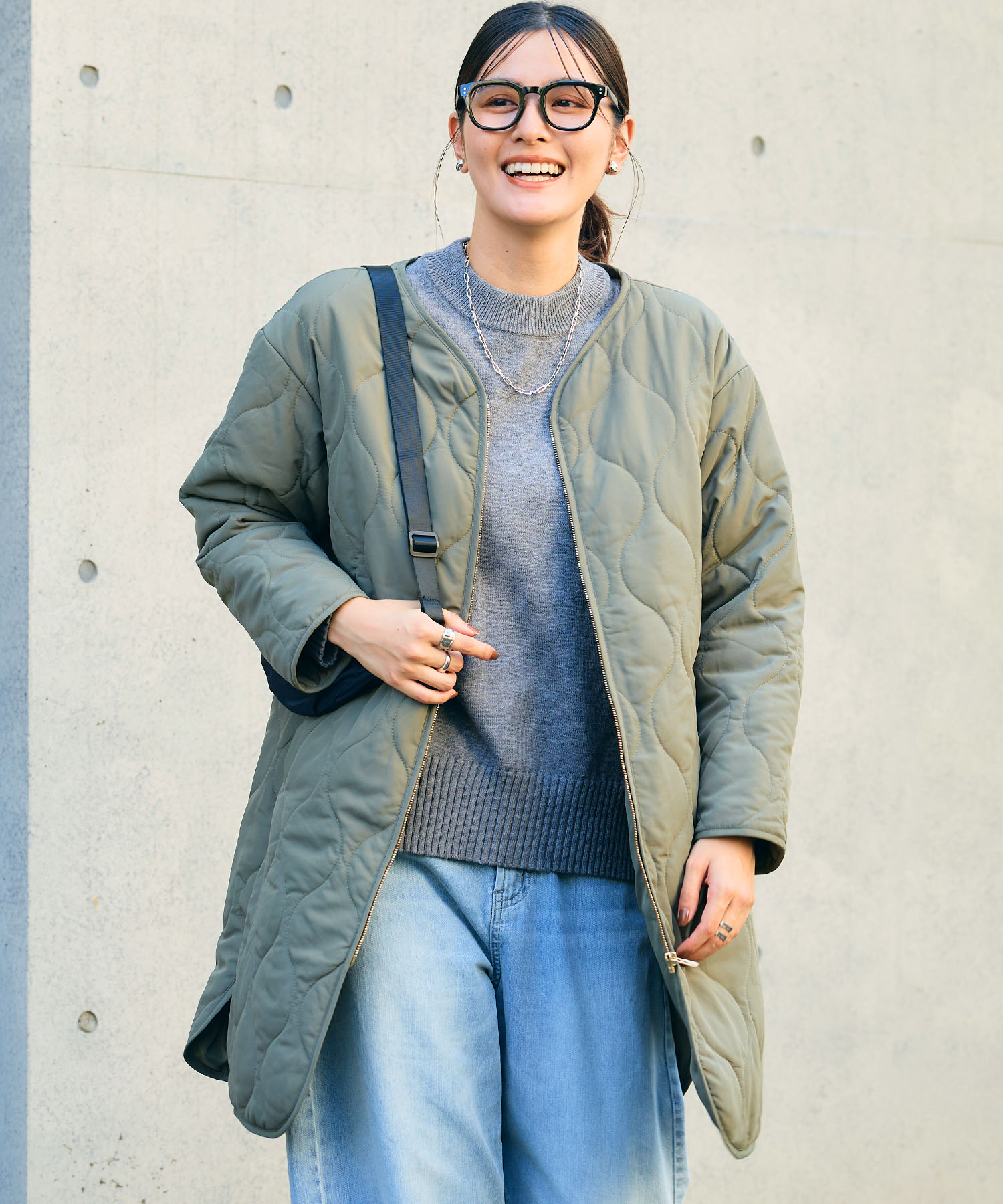 軽さと暖かさを兼ね備えたキルティングコートは、寒さが本格化する1月に心強いこと間違いなし。程よくゆとりのあるシルエットでインナーを選ばず、ワンピースにもパンツにも好相性。動きやすく、デイリーから通勤まで幅広く活躍します。