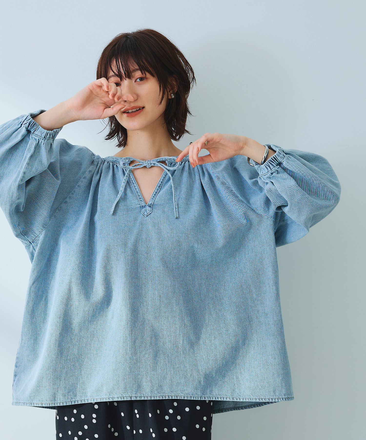 ふんわりとしたフェザー素材が、着こなしに奥行きと女性らしさを添えるニットトップス。インナーとのレイヤードで表情を変えられ、1月の服装にも取り入れやすい万能アイテム。ボトムを選ばず、きれいめにもカジュアルにも着回せます。