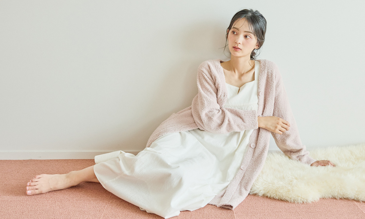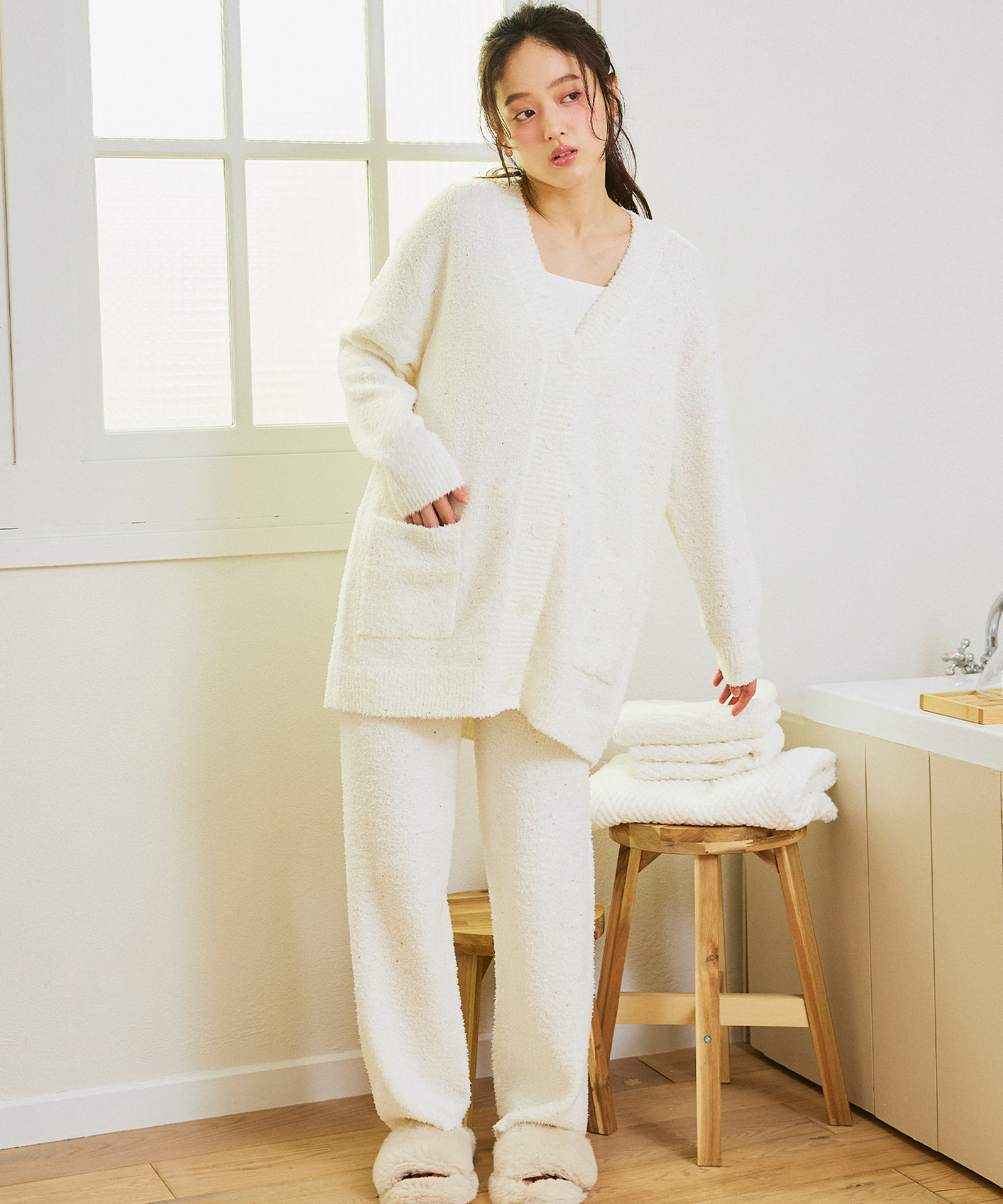 マシュマロニットもちふわカラーネップニットVネックカーディガン ¥3,300(税込)