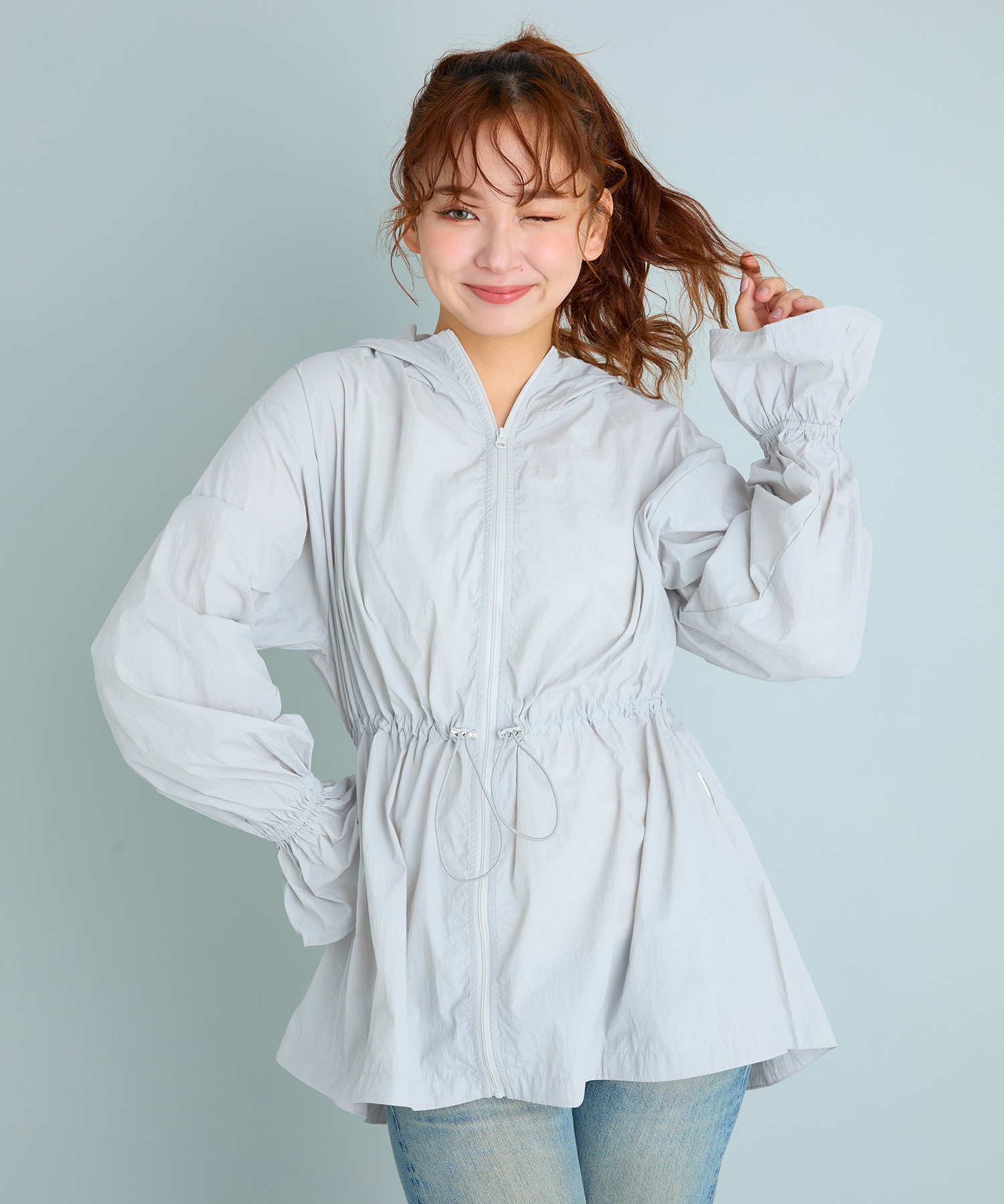 ヒップが隠れる安心の着丈に、ウエストをきゅっと絞れるドローストリング。
