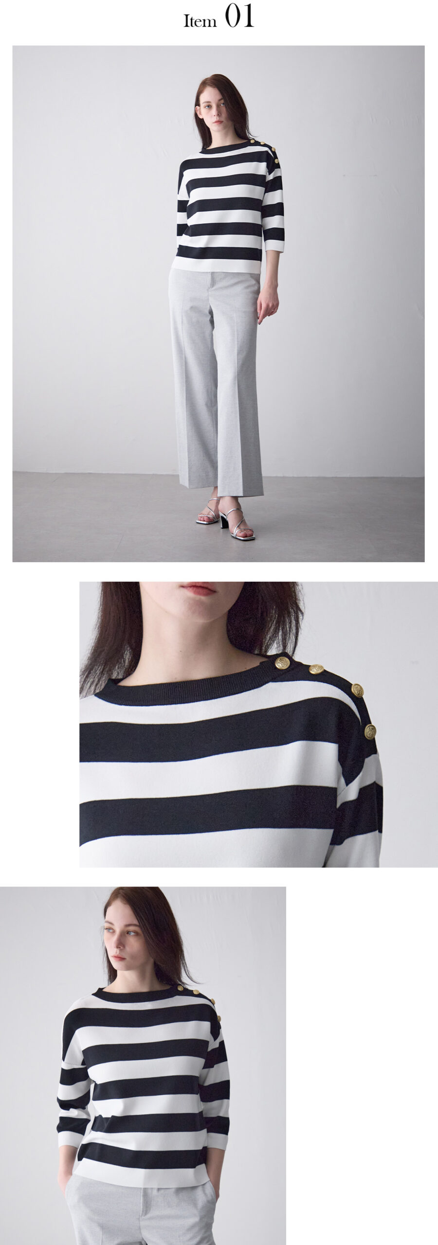 ブランドらしいボートネックが首元をすっきりと見せ、