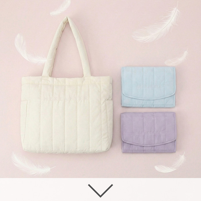 中央には、控えめなトーンで「HEREAFTER(これからも、ずっと)」の文字を刺繍。