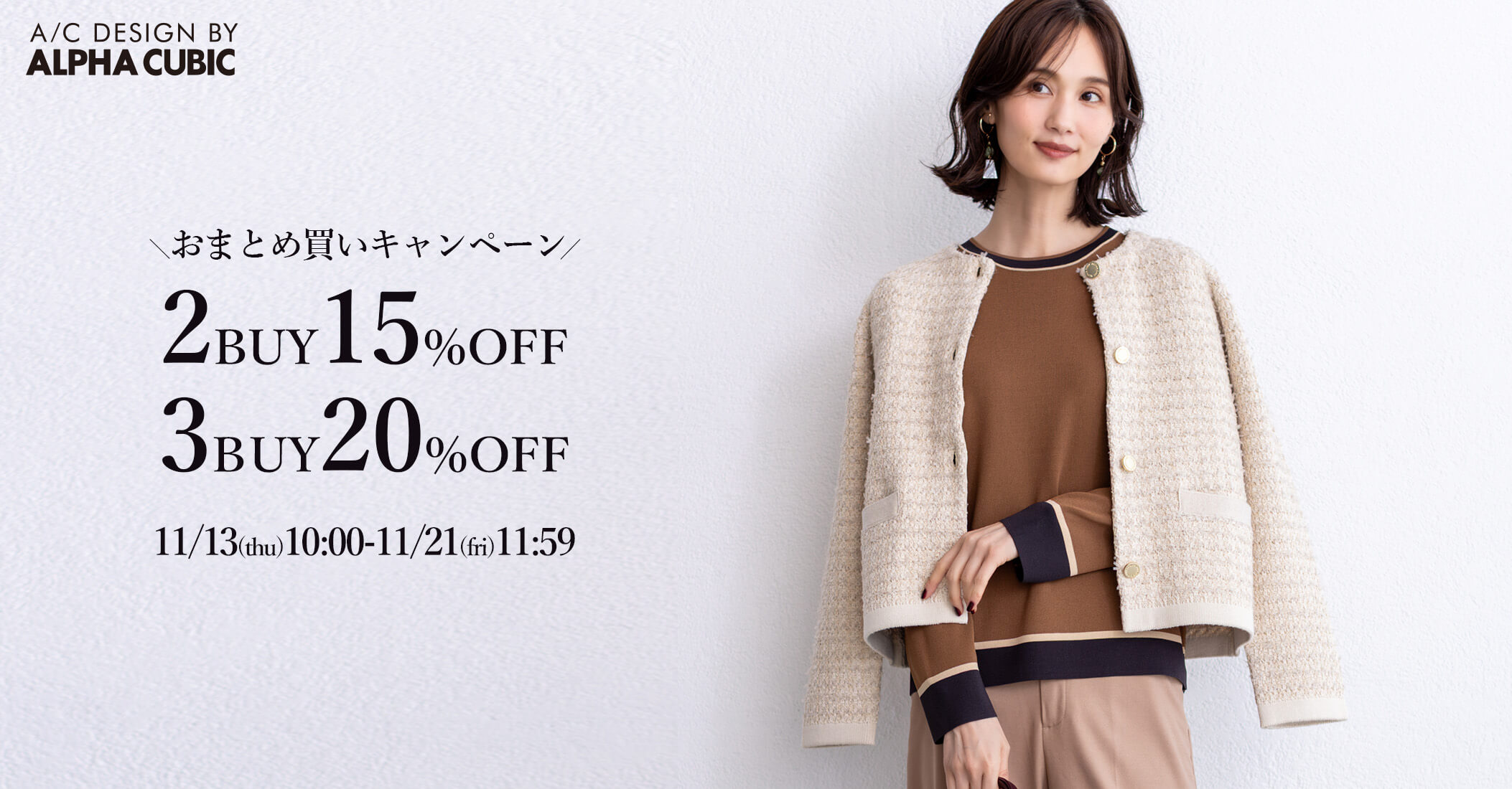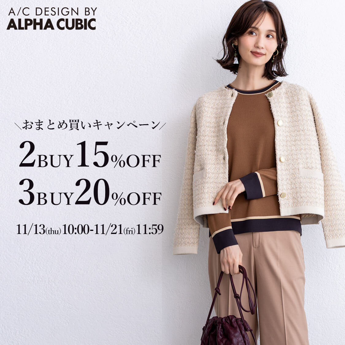 よく見られるカテゴリー CATEGORY ALL OUTER TOPS ONE-PIECE SKIRT PANTS 他のカテゴリも見る OPEN トップス トップス すべて カーディガン・ベスト カットソー・Tシャツ ニット・セーター シャツ・ブラウス スウェット・パーカー スカート スカート すべて パンツ パンツ すべて ワンピース ワンピース すべて アウター アウター すべて ジャケット コート バッグ バッグ すべて アクセサリー小物 アクセサリー小物 すべて 帽子 帽子 すべて ファッション雑貨 ファッション雑貨 すべて ストール・マフラー ベルト その他ファッション雑貨 トップス カーディガン・ベスト カットソー・Tシャツ ニット・セーター シャツ・ブラウス スウェット・パーカー スカート パンツ ワンピース アウター ジャケット コート バッグ アクセサリー小物 帽子 ファッション雑貨 ストール・マフラー ベルト その他ファッション雑貨 特集 FEATURE 寒さに負けない!冬アウター ALPHACUBIC NEW COLLECTION 気温差コーディネート お仕事服特集 特集をもっとみる ピックアップアイテム PICK UP ITEM おまとめ買い対象 A/C DESIGN BY ALPHA CUBIC スーパーウォームブルゾン【軽量】 ¥8,791(税込) ¥10,989(税込) おまとめ買い対象 A/C DESIGN BY ALPHA CUBIC ファーベスト ¥5,271(税込) ¥6,589(税込) おまとめ買い対象 A/C DESIGN BY ALPHA CUBIC ツイードニットカーディガン ¥8,791(税込) ¥10,989(税込) おまとめ買い対象 A/C DESIGN BY ALPHA CUBIC 【美モーション】ワイドパンツ ¥6,152(税込) ¥8,789(税込) ランキング RANKING すべてのランキング A/C DESIGN BYALPHA CUBIC DECOY Petit Honfleur LE SOUK HOLIDAY JOIN PARK ONE'S TRUE ALL トップス ワンピース パンツ アウター スカート 1 おまとめ買い対象 A/C DESIGN BY ALPHA CUBIC ライトダウンショートコート【軽量】 ¥11,431(税込) ¥14,289(税込) 2 おまとめ買い対象 DECOY 裏起毛ワイドパンツ58cm丈 ¥5,930(税込) ¥6,589(税込) 3 おまとめ買い対象 A/C DESIGN BY ALPHA CUBIC ノーカラーショートコート【軽量】 ¥11,431(税込) ¥14,289(税込) 4 おまとめ買い対象 DECOY スーパーウォームコート【発熱中綿】【軽量】 ¥8,791(税込) ¥10,989(税込) 5 おまとめ買い対象 DECOY スマートダウン【はっ水】【ウォッシャブル】 ¥13,191(税込) ¥16,489(税込) 6 おまとめ買い対象 A/C DESIGN BY ALPHA CUBIC ツイードニットカーディガン ¥8,791(税込) ¥10,989(税込) 7 おまとめ買い対象 DECOY スーパーウォームショートコート【発熱中綿】【軽量】 ¥7,911(税込) ¥9,889(税込) 8 NEW おまとめ買い対象 Petit Honfleur 楽ちんハイネックプルオーバー ¥3,511(税込) ¥4,389(税込) 9 おまとめ買い対象 A/C DESIGN BY ALPHA CUBIC 【アルファブリック】テーラードジャケット ¥12,311(税込) ¥15,389(税込) 10 おまとめ買い対象 LE SOUK HOLIDAY スーパーウォームブルゾン ¥8,791(税込) ¥10,989(税込) 1 おまとめ買い対象 A/C DESIGN BY ALPHA CUBIC ツイードニットカーディガン ¥8,791(税込) ¥10,989(税込) 2 NEW おまとめ買い対象 Petit Honfleur 楽ちんハイネックプルオーバー ¥3,511(税込) ¥4,389(税込) 3 おまとめ買い対象 DECOY ダブルフェイスカーディガン【洗える】【抗ピル】 ¥7,911(税込) ¥9,889(税込) 4 おまとめ買い対象 A/C DESIGN BY ALPHA CUBIC ラメリブハイネックニットプルオーバー ¥5,435(税込) ¥6,039(税込) 5 おまとめ買い対象 LE SOUK HOLIDAY メローハイネックプルオーバー(差し色) ¥2,960(税込) ¥3,289(税込) 6 おまとめ買い対象 A/C DESIGN BY ALPHA CUBIC ファーベスト ¥5,271(税込) ¥6,589(税込) 7 おまとめ買い対象 A/C DESIGN BY ALPHA CUBIC 配色ニットプルオーバー ¥5,271(税込) ¥6,589(税込) 8 おまとめ買い対象 LE SOUK HOLIDAY メローハイネックプルオーバー ¥2,960(税込) ¥3,289(税込) 9 おまとめ買い対象 Petit Honfleur ケーブルZIPカーディガン ¥6,151(税込) ¥7,689(税込) 10 おまとめ買い対象 DECOY ニットプルオーバー ¥4,391(税込) ¥5,489(税込) 1 NEW おまとめ買い対象 A/C DESIGN BY ALPHA CUBIC ドッキングワンピース ¥12,089(税込) 2 おまとめ買い対象 DECOY 裏起毛ジャンスカ ¥7,911(税込) ¥9,889(税込) 3 おまとめ買い対象 A/C DESIGN BY ALPHA CUBIC チェーンプリントワンピース ¥8,791(税込) ¥10,989(税込) 4 おまとめ買い対象 A/C DESIGN BY ALPHA CUBIC ローズオイル加工ジャンスカ ¥7,911(税込) ¥9,889(税込) 5 おまとめ買い対象 A/C DESIGN BY ALPHA CUBIC アルコラージュプリントワンピース ¥6,153(税込) ¥10,989(税込) 6 おまとめ買い対象 A/C DESIGN BY ALPHA CUBIC 【アルファブリック】ジャンバードレス ¥7,692(税込) ¥10,989(税込) 7 おまとめ買い対象 A/C DESIGN BY ALPHA CUBIC スキッパーワンピース【接触冷感】 ¥3,955(税込) ¥9,889(税込) 8 おまとめ買い対象 Petit Honfleur ドロストジャンパースカート ¥3,515(税込) ¥8,789(税込) 9 おまとめ買い対象 A/C DESIGN BY ALPHA CUBIC ボリュームスリーブワンピース ¥7,031(税込) ¥8,789(税込) 10 おまとめ買い対象 LE SOUK HOLIDAY レイヤードワンピース ¥6,922(税込) ¥9,889(税込) 1 おまとめ買い対象 DECOY 裏起毛ワイドパンツ58cm丈 ¥5,930(税込) ¥6,589(税込) 2 おまとめ買い対象 DECOY 裏起毛ワイドパンツ63cm丈 ¥5,930(税込) ¥6,589(税込) 3 おまとめ買い対象 A/C DESIGN BY ALPHA CUBIC 【アルファブリック】ワイドパンツ ¥7,031(税込) ¥8,789(税込) 4 NEW おまと