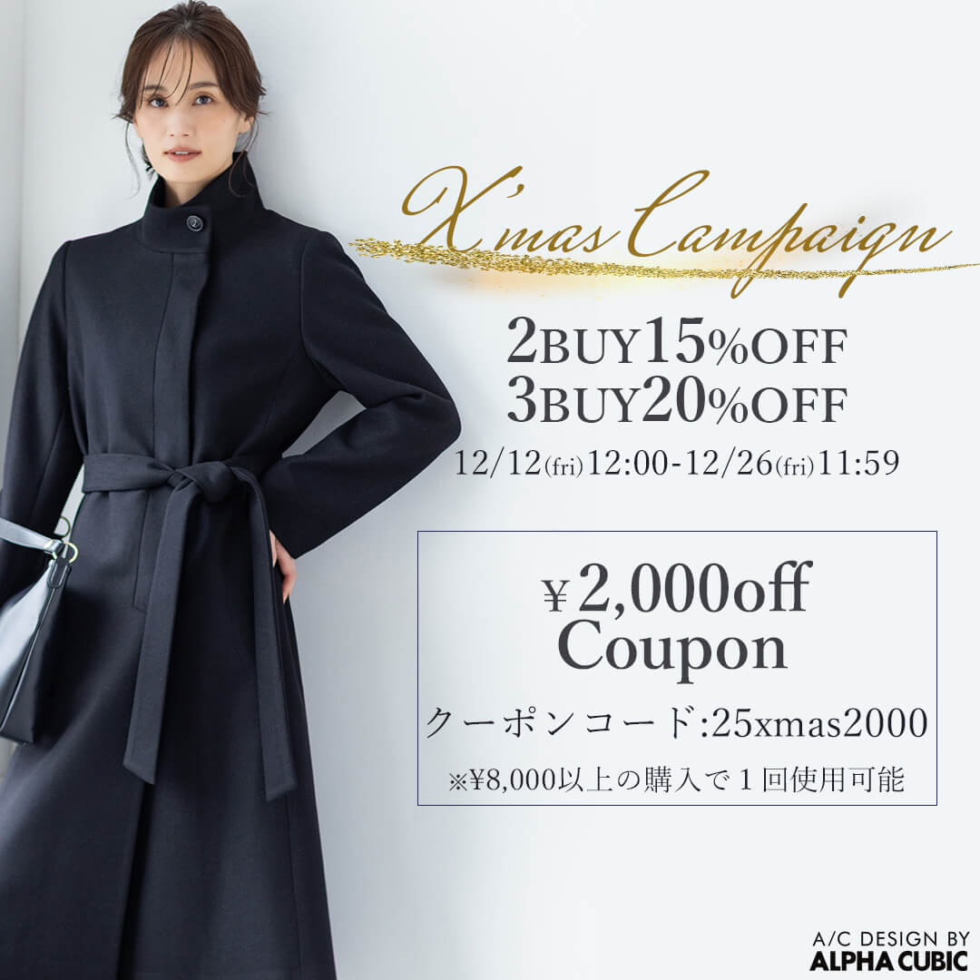 よく見られるカテゴリー CATEGORY ALL OUTER TOPS ONE-PIECE SKIRT PANTS 他のカテゴリも見る OPEN トップス トップス すべて カーディガン・ベスト カットソー・Tシャツ ニット・セーター シャツ・ブラウス スウェット・パーカー スカート スカート すべて パンツ パンツ すべて ワンピース ワンピース すべて アウター アウター すべて ジャケット コート バッグ バッグ すべて アクセサリー小物 アクセサリー小物 すべて 帽子 帽子 すべて ファッション雑貨 ファッション雑貨 すべて ストール・マフラー ベルト その他ファッション雑貨 トップス カーディガン・ベスト カットソー・Tシャツ ニット・セーター シャツ・ブラウス スウェット・パーカー スカート パンツ ワンピース アウター ジャケット コート バッグ アクセサリー小物 帽子 ファッション雑貨 ストール・マフラー ベルト その他ファッション雑貨 特集 FEATURE 寒さに負けない!冬アウター ALPHACUBIC NEW COLLECTION お仕事服特集 冬の本命アウター 特集をもっとみる ピックアップアイテム PICK UP ITEM おまとめ買い対象 A/C DESIGN BY ALPHA CUBIC ラメリブハイネックニットプルオーバー【ハンドウォッシャブル】 ¥4,227(税込) ¥6,039(税込) おまとめ買い対象 A/C DESIGN BY ALPHA CUBIC 【アルファブリック】ワイドパンツ ¥6,152(税込) ¥8,789(税込) おまとめ買い対象 A/C DESIGN BY ALPHA CUBIC ライトダウンキルトコート【軽量・はっ水・ハンドウォッシャブル】 ¥12,312(税込) ¥17,589(税込) おまとめ買い対象 A/C DESIGN BY ALPHA CUBIC 【美モーション】ワイドパンツ ¥3,515(税込) ¥8,789(税込) ランキング RANKING すべてのランキング A/C DESIGN BYALPHA CUBIC DECOY Petit Honfleur LE SOUK HOLIDAY JOIN PARK ONE'S TRUE ALL トップス ワンピース パンツ アウター スカート 1 おまとめ買い対象 A/C DESIGN BY ALPHA CUBIC ライトダウンキルトコート【軽量・はっ水・ハンドウォッシャブル】 ¥12,312(税込) ¥17,589(税込) 2 おまとめ買い対象 A/C DESIGN BY ALPHA CUBIC ロングダウンコート【はっ水・フード取り外し可】 ¥19,242(税込) ¥27,489(税込) 3 おまとめ買い対象 Petit Honfleur フードキルティング中綿コート【はっ水】 ¥10,002(税込) ¥14,289(税込) 4 おまとめ買い対象 DECOY 裏起毛ワイドパンツ58cm丈 ¥4,612(税込) ¥6,589(税込) 5 おまとめ買い対象 DECOY ショートダウンコート【はっ水・ハンドウォッシャブル】 ¥13,852(税込) ¥19,789(税込) 6 おまとめ買い対象 LE SOUK HOLIDAY フードロングダウンコート ¥15,392(税込) ¥21,989(税込) 7 おまとめ買い対象 A/C DESIGN BY ALPHA CUBIC リブ切り替えハイネックニットワンピース ¥9,671(税込) ¥12,089(税込) 8 おまとめ買い対象 A/C DESIGN BY ALPHA CUBIC ライトダウンショートコート【軽量・はっ水・ハンドウォッシャブル】 ¥10,002(税込) ¥14,289(税込) 9 おまとめ買い対象 A/C DESIGN BY ALPHA CUBIC 【アルファブリック】テーラードジャケット ¥10,772(税込) ¥15,389(税込) 10 おまとめ買い対象 DECOY ウーレットチュニック ¥5,382(税込) ¥7,689(税込) 1 おまとめ買い対象 DECOY ウーレットチュニック ¥5,382(税込) ¥7,689(税込) 2 NEW おまとめ買い対象 A/C DESIGN BY ALPHA CUBIC ウールカシミヤプルオーバー ¥7,031(税込) ¥8,789(税込) 3 おまとめ買い対象 A/C DESIGN BY ALPHA CUBIC ボウタイブラウス ¥4,612(税込) ¥6,589(税込) 4 おまとめ買い対象 DECOY ダブルフェイスニットプルオーバー ¥4,612(税込) ¥6,589(税込) 5 おまとめ買い対象 A/C DESIGN BY ALPHA CUBIC リブ切り替えハイネックニットプルオーバー ¥7,031(税込) ¥8,789(税込) 6 おまとめ買い対象 A/C DESIGN BY ALPHA CUBIC スパンコールニットプルオーバー ¥6,151(税込) ¥7,689(税込) 7 NEW おまとめ買い対象 A/C DESIGN BY ALPHA CUBIC ファーニットプルオーバー ¥7,911(税込) ¥9,889(税込) 8 NEW おまとめ買い対象 Petit Honfleur タートルネックプルオーバー【吸湿発熱】 ¥4,391(税込) ¥5,489(税込) 9 おまとめ買い対象 A/C DESIGN BY ALPHA CUBIC ラメリブハイネックニットプルオーバー【ハンドウォッシャブル】 ¥4,227(税込) ¥6,039(税込) 10 おまとめ買い対象 LE SOUK HOLIDAY レイヤードニットプルオーバー ¥5,271(税込) ¥6,589(税込) 1 おまとめ買い対象 A/C DESIGN BY ALPHA CUBIC リブ切り替えハイネックニットワンピース ¥9,671(税込) ¥12,089(税込) 2 おまとめ買い対象 A/C DESIGN BY ALPHA CUBIC リバティプリントワンピース【ファーストライン】 ¥12,312(税込) ¥17,589(税込) 3 おまとめ買い対象 Petit Honfleur キーネックジャンパースカート ¥6,152(税込) ¥8,789(税込) 4 おまとめ買い対象 A/C DESIGN BY ALPHA CUBIC ローズオイル加工ジャンスカ ¥6,922(税込) ¥9,889(税込) 5 おまとめ買い対象 LE SOUK HOLIDAY 【接触冷感】ピンタックワンピース ¥6,152(税込) ¥8,789(税込) 6 おまとめ買い対象 A/C DESIGN BY ALPHA CUBIC チェーンプリントワンピース ¥7,692(税込) ¥10,989(税込) 7 おまとめ買い対象 Petit Honfleur ドロストジャンパースカート ¥3,515(税込) ¥8,789(税込) 8 NEW おまとめ買い対象 Petit Honfleur バックルジャンスカ ¥7,031(税込) ¥8,789(税込) 9 おまとめ買い対象 LE SOUK HOLIDAY レイヤードワンピース ¥6,922(税込) ¥9,889(税込) 10 おまとめ買い対象 LE SOUK HOLIDAY 【接触冷感】モックネックワンピース ¥4,612(税
