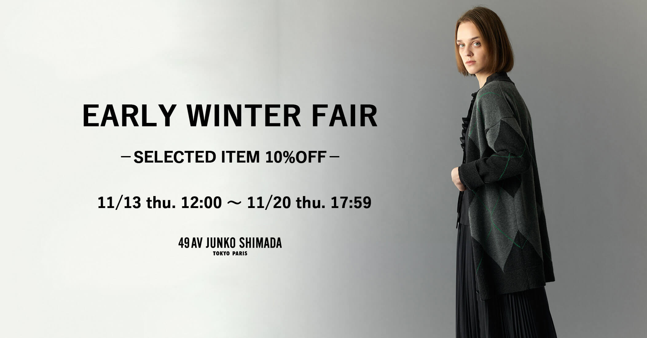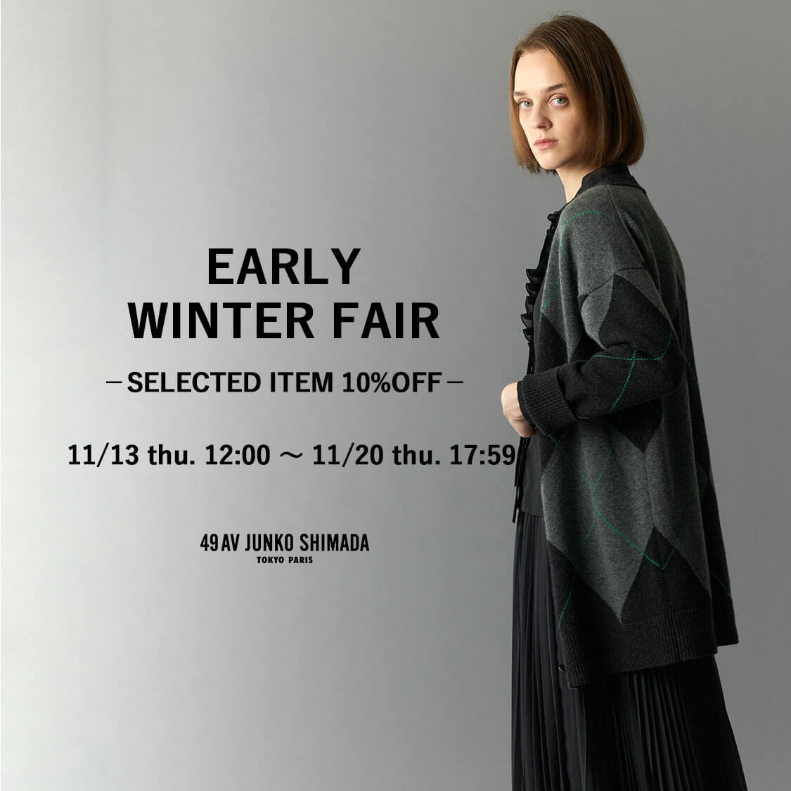 FEATURE NEW ARRIVALS 2025.11.14 WOOL JERSEY 2025.11.04 WEB LIMITED COLLECTION 2025.11.04 RE EDITION 2025.10.03 LOOK BOOK AUTUMN WINTER 2025 vol.2 2025.10.10 LOOK BOOK AUTUMN WINTER 2025 vol.1 2025.08.15 VIEW ALL CATEGORY TOPS DRESS SKIRT PANTS OUTER SALE 他のカテゴリも見る OPEN 全てのアイテム トップス トップス すべて カーディガン・ベスト カットソー・Tシャツ ニット・セーター シャツ・ブラウス スウェット・パーカー スカート スカート すべて パンツ パンツ すべて ワンピース ワンピース すべて アウター アウター すべて ジャケット コート バッグ バッグ すべて アクセサリー小物 アクセサリー小物 すべて 帽子 帽子 すべて ファッション雑貨 ファッション雑貨 すべて ストール・マフラー ベルト 全てのアイテム トップス カーディガン・ベスト カットソー・Tシャツ ニット・セーター シャツ・ブラウス スウェット・パーカー スカート パンツ ワンピース アウター ジャケット コート バッグ アクセサリー小物 帽子 ファッション雑貨 ストール・マフラー ベルト NEW ARRIVALS NEW 49AV JUNKO SHIMADA ロキャロンカシミアチェック柄マフラー ¥49,500(税込) ¥55,000(税込) NEW 49AV JUNKO SHIMADA ロキャロンウールチェック柄ストール ¥39,600(税込) ¥44,000(税込) NEW 49AV JUNKO SHIMADA スパンボイルフリル付きリボンタイブラウス ¥38,610(税込) ¥42,900(税込) NEW 49AV JUNKO SHIMADA 異素材コンビジップアップブルゾン ¥58,410(税込) ¥64,900(税込) NEW 49AV JUNKO SHIMADA ショート丈メルトンジャケット ¥58,410(税込) ¥64,900(税込) NEW 49AV JUNKO SHIMADA アーガイル柄半袖ニットワンピース ¥99,000(税込) ¥110,000(税込) VIEW ALL RANKING ALL トップス ワンピース スカート パンツ アウター 1 NEW 49AV JUNKO SHIMADA クルーネックカシミヤカーディガン ¥35,640(税込) ¥39,600(税込) 2 49AV JUNKO SHIMADA ゴートレザージャケット ¥99,000(税込) ¥110,000(税込) 3 49AV JUNKO SHIMADA 【TIME SALE】2つボタンテーラードジャケット ¥48,400(税込) ¥121,000(税込) 4 49AV JUNKO SHIMADA 【TIME SALE】ケープ風コート ¥45,980(税込) ¥121,000(税込) 5 49AV JUNKO SHIMADA ウールリネンワンピース ¥68,310(税込) ¥75,900(税込) 6 NEW 49AV JUNKO SHIMADA オフハイネックカシミヤニット ¥35,640(税込) ¥39,600(税込) 1 NEW 49AV JUNKO SHIMADA クルーネックカシミヤカーディガン ¥35,640(税込) ¥39,600(税込) 2 NEW 49AV JUNKO SHIMADA オフハイネックカシミヤニット ¥35,640(税込) ¥39,600(税込) 3 49AV JUNKO SHIMADA 【WEB限定】ステッチニットカーディガン ¥23,760(税込) ¥26,400(税込) 4 NEW 49AV JUNKO SHIMADA クルーネックカシミヤ半袖ニット ¥25,740(税込) ¥28,600(税込) 5 49AV JUNKO SHIMADA 【TIME SALE】インスピレーションエコベーシックボートネックセーター ¥12,540(税込) ¥33,000(税込) 6 49AV JUNKO SHIMADA マーメイドプリントノースリーブブラウス ¥42,570(税込) ¥47,300(税込) 1 49AV JUNKO SHIMADA ウールリネンワンピース ¥68,310(税込) ¥75,900(税込) 2 49AV JUNKO SHIMADA 【TIME SALE】Aラインハイネックワンピース ¥28,842(税込) ¥75,900(税込) 3 NEW 49AV JUNKO SHIMADA 異素材コンビロング丈ワンピース ¥62,370(税込) ¥69,300(税込) 4 49AV JUNKO SHIMADA 【TIME SALE】レース柄フェザーワンピース ¥30,096(税込) ¥79,200(税込) 5 49AV JUNKO SHIMADA ハイネック半袖ウールワンピース ¥54,450(税込) ¥60,500(税込) 6 49AV JUNKO SHIMADA 【TIME SALE】Aラインニットワンピース ¥20,020(税込) ¥71,500(税込) 1 49AV JUNKO SHIMADA ライトウェザーフレアスカート ¥35,640(税込) ¥39,600(税込) 2 49AV JUNKO SHIMADA 【TIME SALE】フラワープリントスカート ¥25,960(税込) ¥64,900(税込) 3 49AV JUNKO SHIMADA 【TIME SALE】ニットマーメイドスカート ¥12,540(税込) ¥33,000(税込) 4 49AV JUNKO SHIMADA 【TIME SALE】タックフレアスカート ¥21,450(税込) ¥42,900(税込) 5 49AV JUNKO SHIMADA 【TIME SALE】ペイズリー柄タイトスカート ¥20,790(税込) ¥69,300(税込) 6 49AV JUNKO SHIMADA 【TIME SALE】フラワープリントフレアスカート ¥19,470(税込) ¥64,900(税込) 1 49AV JUNKO SHIMADA 【TIME SALE】裏起毛ストレッチパンツ ¥14,520(税込) ¥36,300(税込) 2 49AV JUNKO SHIMADA 【TIME SALE】ワイドパンツ ¥15,840(税込) ¥39,600(税込) 3 49AV JUNKO SHIMADA 【TIME SALE】ストレッチツイルスリムパンツ ¥13,794(税込) ¥36,300(税込) 4 49AV JUNKO SHIMADA 【TIME SALE】コットンチノストレートパンツ ¥9,075(税込) ¥36,300(税込) 1 49AV JUNKO SHIMADA ゴートレザージャケット ¥99,000(税込) ¥110,000(税込) 2 49AV JUNKO SHIMADA 【TIME SALE】2つボタンテーラードジャケット ¥48,400(税込) ¥121,000(税込) 3 49AV JUNKO SHIMADA 【TIME SALE】ケープ風コート ¥45,980(税込) ¥121,000(税込) 4 49AV JUNKO SHIMADA ウールジャケット ¥58,410(税込) ¥64,900(税込) 5 49AV JUNKO SHIMADA 【TIME SALE】ピークドラペルジャケット ¥48,400(税込) ¥121,000(税込) 6 49AV JUNKO SHIMADA 【TIME SALE】ワックスコットンコート ¥43,560(税込) ¥108,900(税込) VIEW ALL STYLING MOVIE LIVE メールマガジン登録 お得な情報満載のメルマガを毎週お届け! LINE Instagram facebook